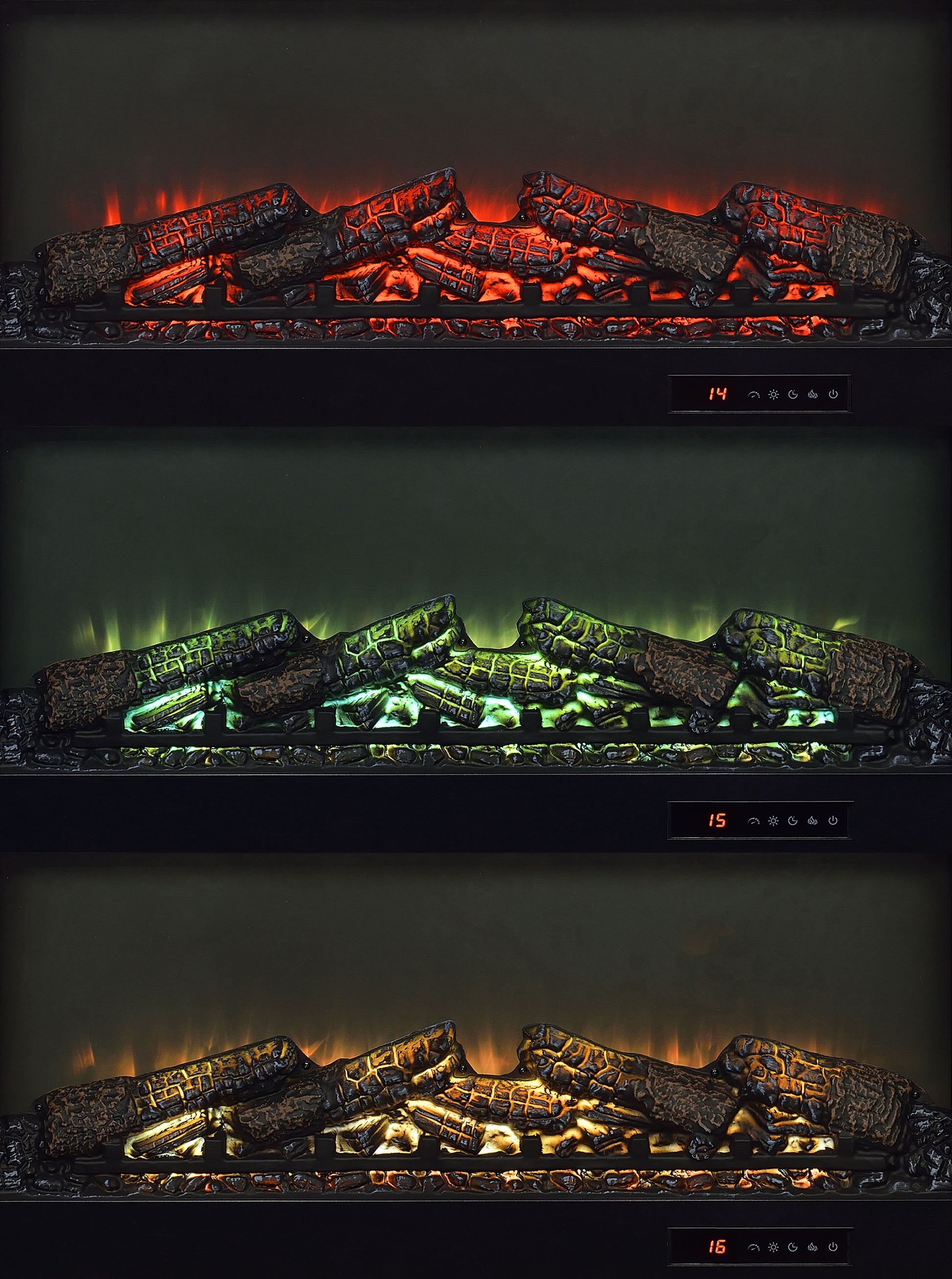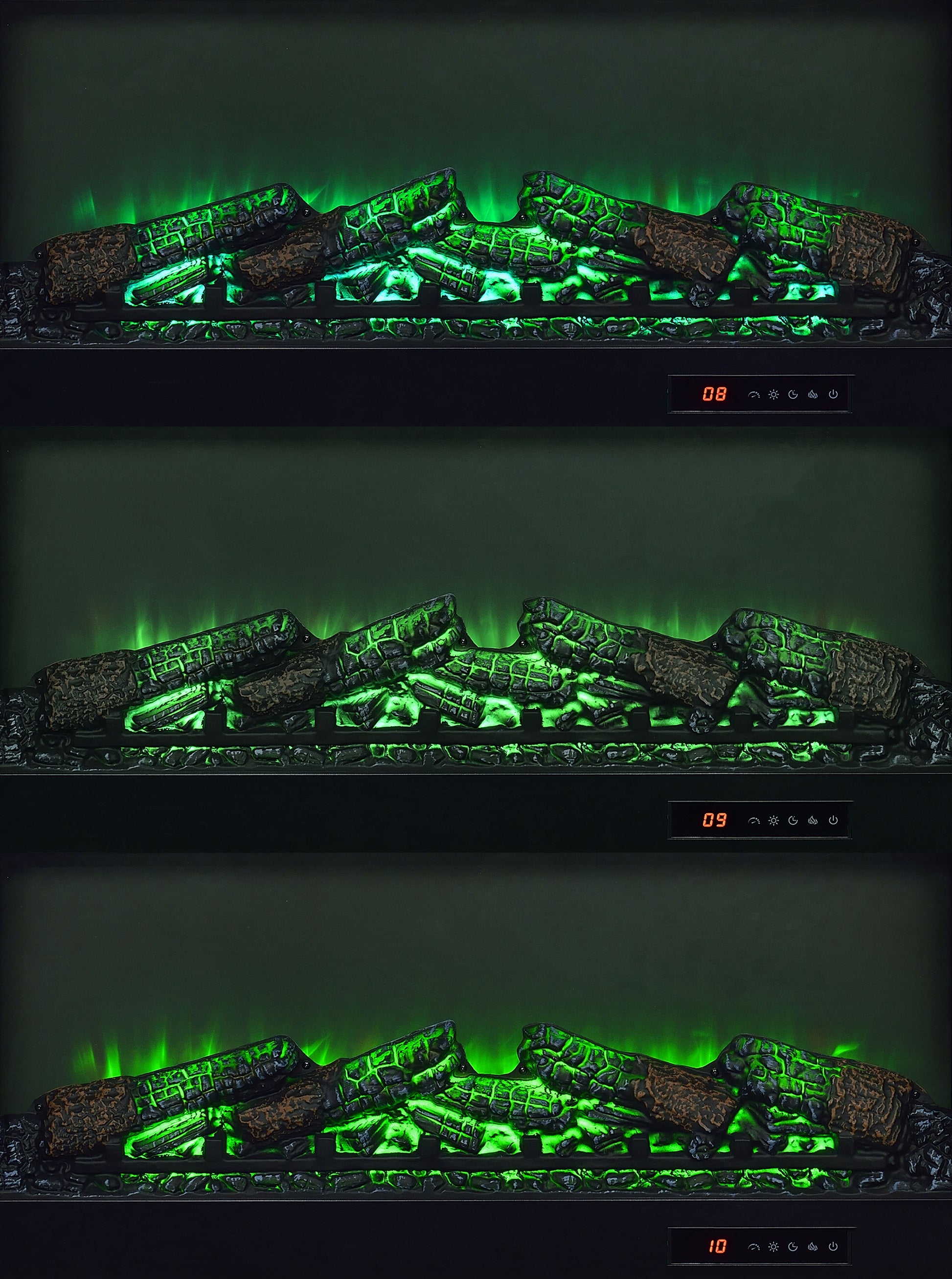 • Center fireplace insert without heat function and glowing ember display for cozy ambiance