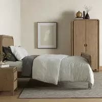 Simple and natural-spirited. Light-finished reclaimed woods shape stately cabinetry with rounded corners for a softened look. Inside, generous space and adjustable shelving fuse for ample storage ideal in any room.
