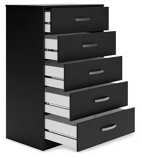 | Details | Made with engineered wood (MDF/particleboard/plywood) and decorative laminate for the right balance of affordability and durability, Matte black finish with subtle replicated wood grain, 5 smooth-gliding drawers with ball-bearing construction and vinyl-wrapped sides and back, Brushed nickel-tone hardware, Safety is a top priority, clothing storage units are designed to meet the most current standard for stability, ASTM F 2057 (ASTM International), Drawers extend out to accommodate maximum access to drawer interior while maintaining safety, Assembly required | |