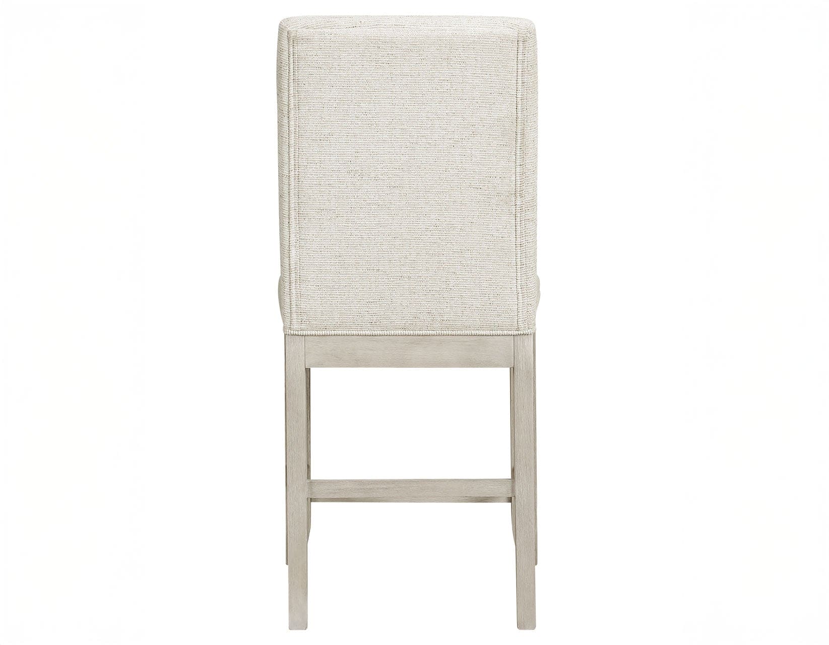Sophisticated and elegant with a casual touch, the Garland 24″ Counter Stool is designed to enhance any space. This fully upholstered counter-height stool features a soft oatmeal polyester cover and a brass accent, seamlessly blending formal and relaxed styles. The solid wood legs, finished in a lightly distressed greige tone, add warmth and character, making it a perfect addition to your home.