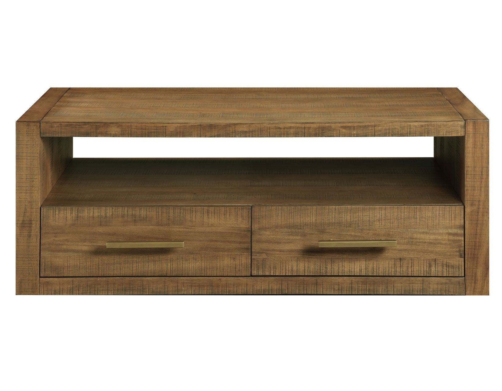 Bring casual elegance to your living room with the Garland Castered Coffee Table, a stylish blend of modern design and rustic charm. Its clean lines and saw rasp distressing in a warm toffee finish create a beautiful focal point. The rough hewn top offers a lovely display area, while two drawers provide convenient storage for essentials. With hidden casters, it’s easy to move the table for cleaning or when you need extra space to relax. This coffee table is both functional and chic, perfect for any home.