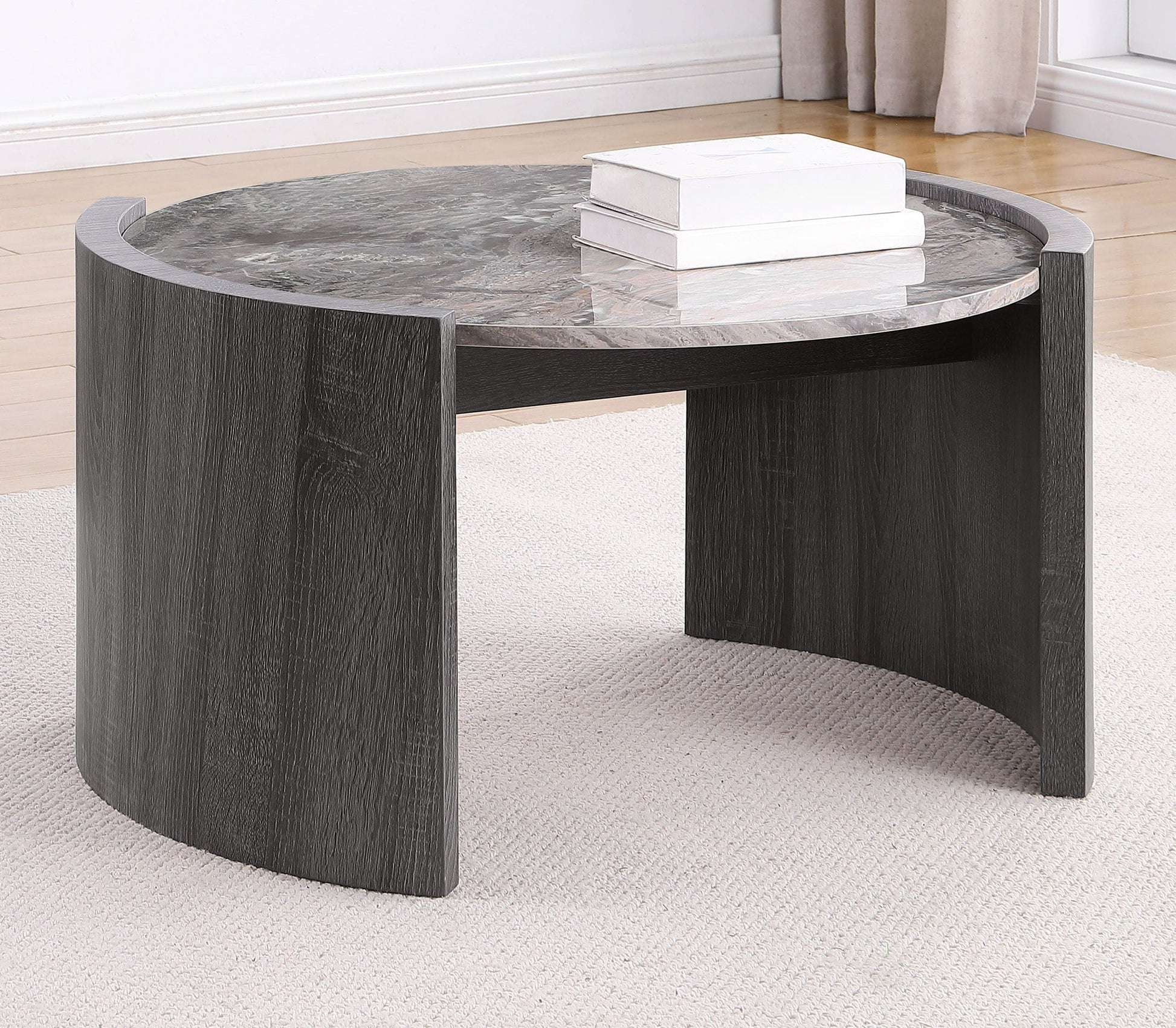 Gladstone Round Faux Marble Top Coffee Table Distressed Grey