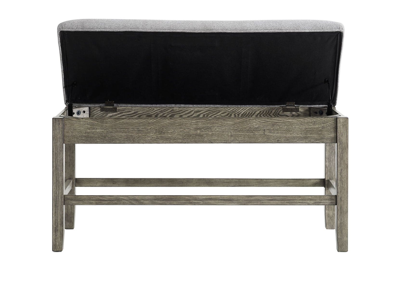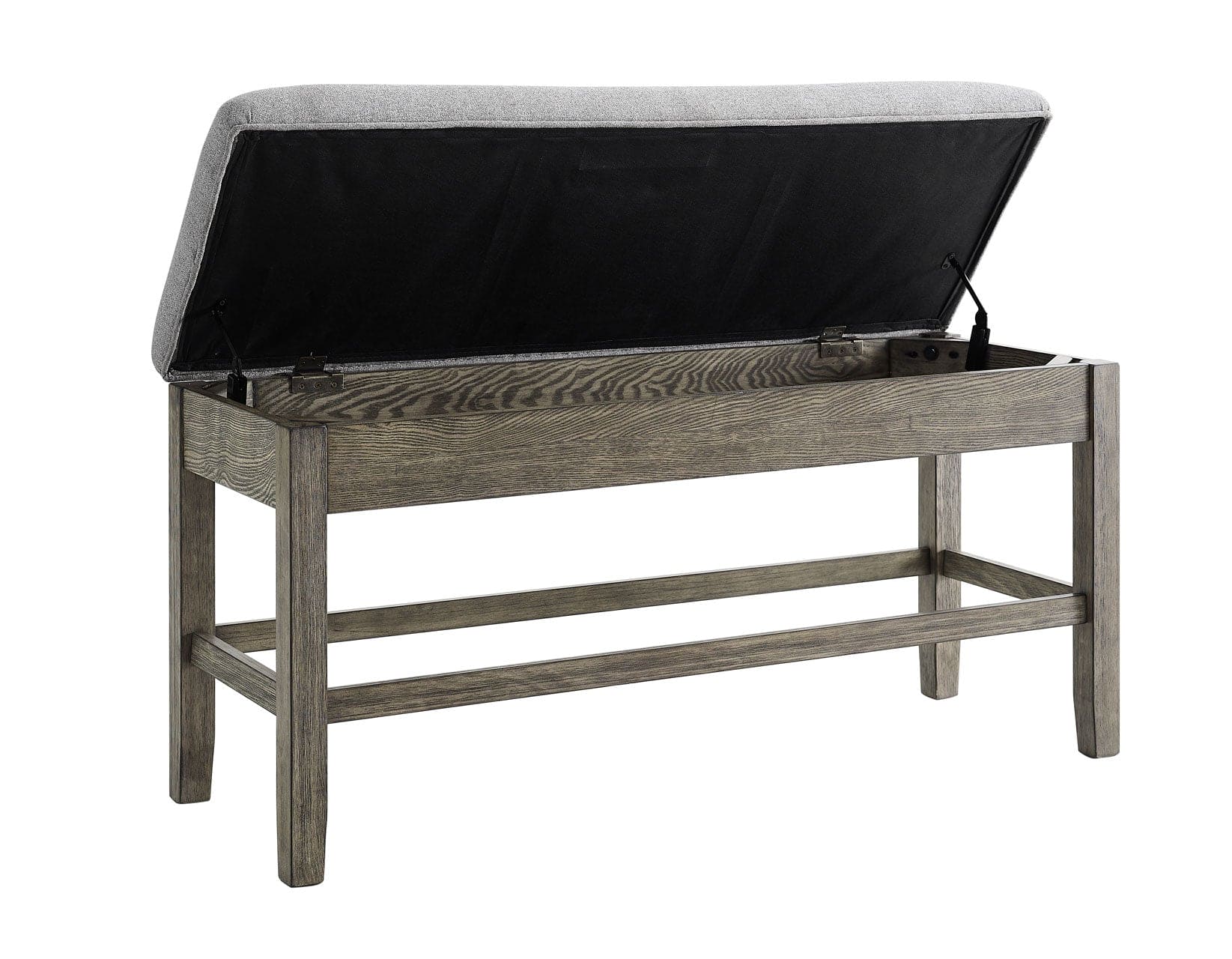 Refined rustic styling brings an elegant casual feel to dining in the Grayson Counter Dining Set. The Counter Bench offers ample seating for several guests and is great for kids or parents and children to sit together. The bench has a lift-top lid that also offers storage for placements, accessories or anything else you need to store.