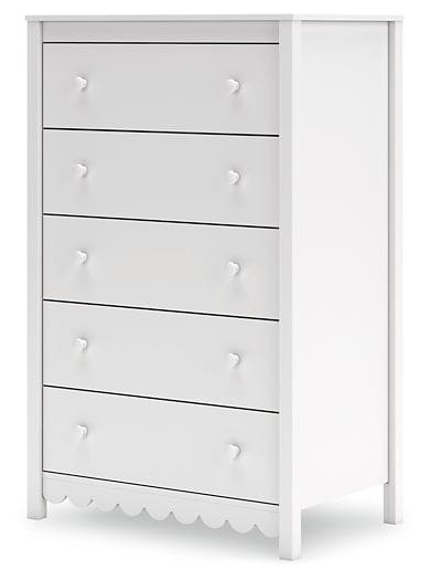 Thanks to its playful scalloped design, this chest of drawers is the perfect fit for cottage or coastal farmhouse interiors. The matte white finish serves as the perfect backdrop to showcase your personal taste and creativity. And its spacious drawers let you say goodbye to clutter and hello to well-organized whimsy.