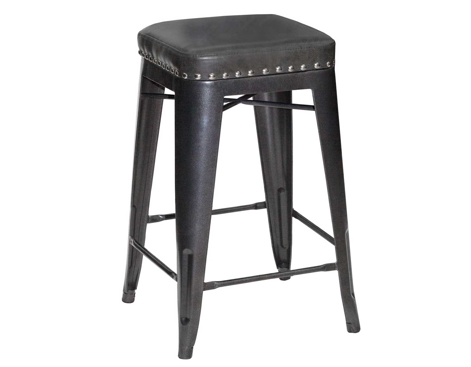 Sleek style in a compact design is the hallmark of this Backless Counter Stool that fits 36-Inch high counters. An upholstered granite leatherette seat ensures a comfortable seat while details like nickel nailhead and box seat construction make sure the stool stands out! A great addition to industrial, farmhouse or transitional interiors, the fully welded steel frame makes for a sturdy, durable stool that requires no assembly.