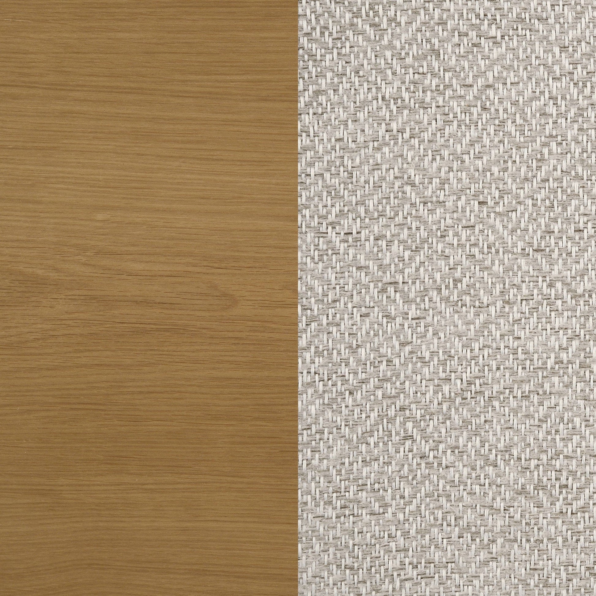 • Crafted from solid rubberwood, engineered wood, white oak veneer, and fabric materials
