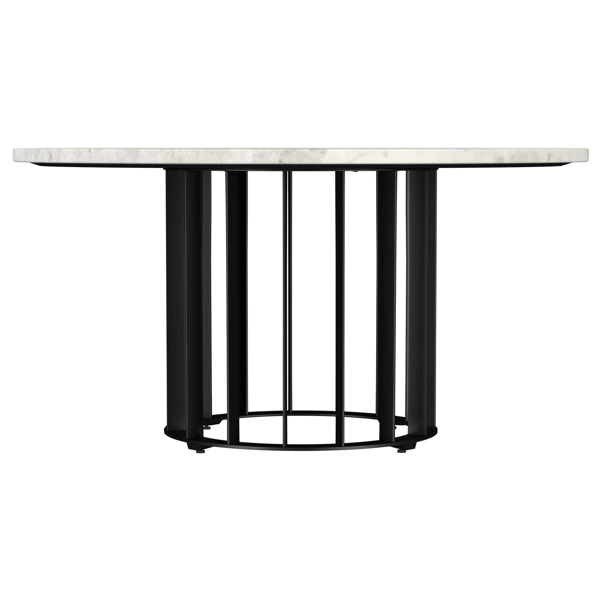 This coffee table set blends modern design with high-end materials, featuring genuine marble tops and sturdy iron bases. The round coffee table and matching end table share an open vertical rod design for a striking yet minimalist aesthetic. The spacious marble surfaces offer ample space for serving, display, or everyday use. The durable iron construction ensures stability, making this occasional table set a stylish and functional addition to any living space.