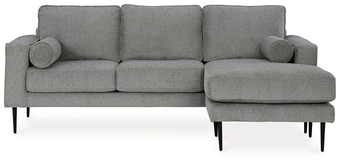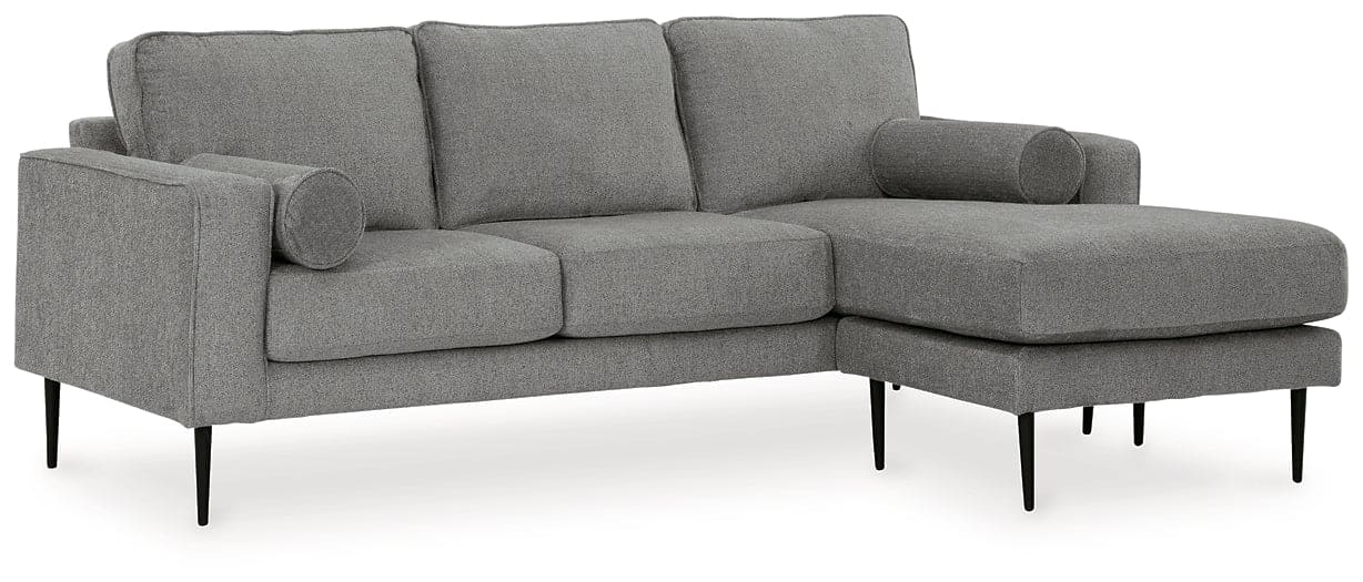 Simple comfort meets modern function in this sofa chaise. An apt addition to apartments and other small spaces, this slim-profiled piece welcomes you with its cozy character. A subtle chevron pattern on the cushions refresh the classic neutral hue, elevating the look while still suiting a variety of styles. Black accent legs add a dash of contemporary flair.