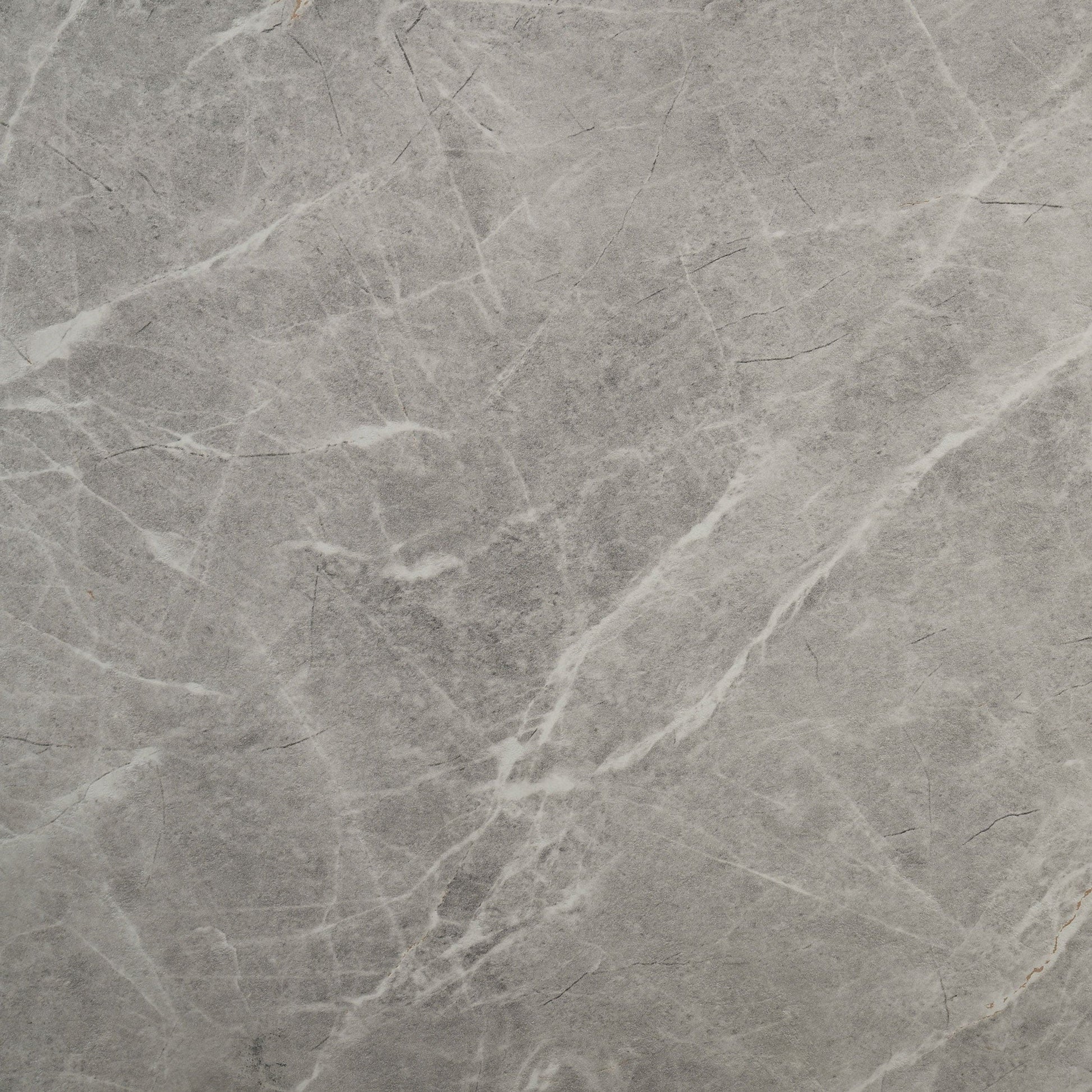 • Melamine faux marble top provides sleek contrast with white and grey veining