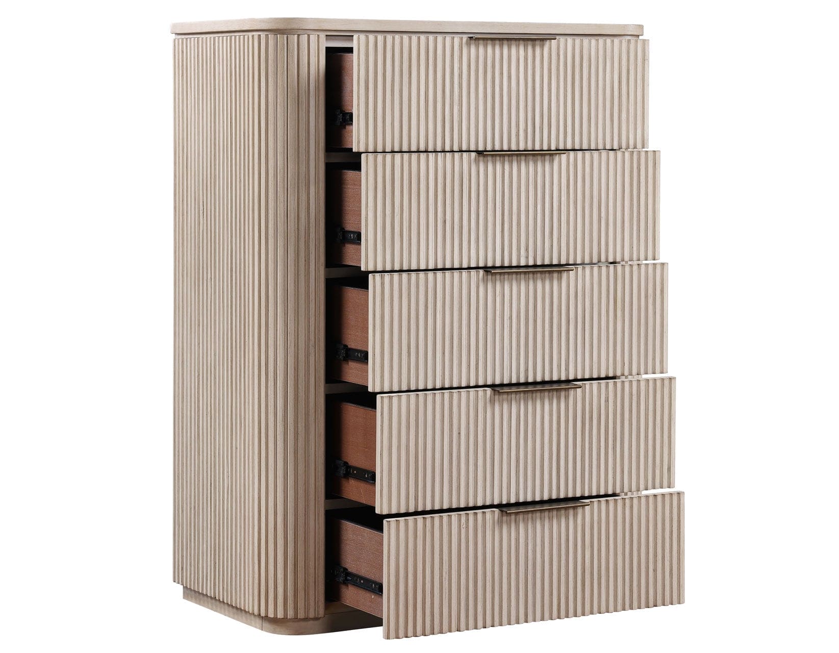 Henry 5-Drawer Reeded Chest, Tan Finish