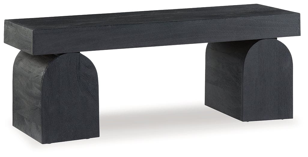 The solid craftsmanship and contemporary style of this bench make it the perfect accent piece in your modern living room, home office or entryway. Its lightly sandblasted effect exudes a decidedly on-trend vibe. Oversized decorative legs add an upscale art gallery quality.