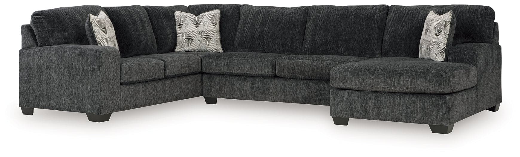 | Details | Includes 3 pieces: right-arm facing corner chaise, armless loveseat and left-arm facing sofa, "Left-arm" and "right-arm" describe the position of the arm when you face the piece, Corner-blocked frame, Attached back and loose seat cushions, High-quality foam cushions wrapped in poly fiber, Accent pillows included, Pillows with soft polyfill, Polyester upholstery and pillows, Exposed feet with faux wood finish, Platform foundation system resists sagging 3x better than spring system after 20,000 testing cycles by providing more even support, Smooth platform foundation maintains tight, wrinkle-free look without dips or sags that can occur over time with sinuous spring foundations | |