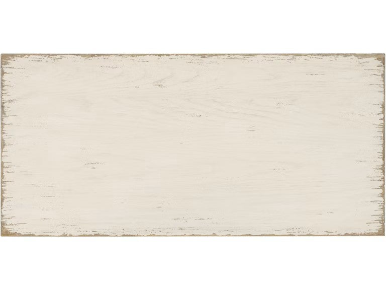 Finishes: The Americana Daisy finish is a time worn white finish on cathedral oak veneers representing the natural wear one might expect of pieces passed down through the family over time revealing the rich oak character beneath. Metal alloy knob pulls in an antique bronze finish.