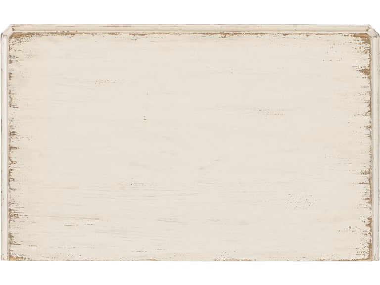 Finish: The Americana Daisy finish is a time worn white finish on cathedral oak veneers representing the natural wear one might expect of pieces passed down through the family over time revealing the rich oak character beneath. Metal alloy knob pulls in an antique bronze finish.