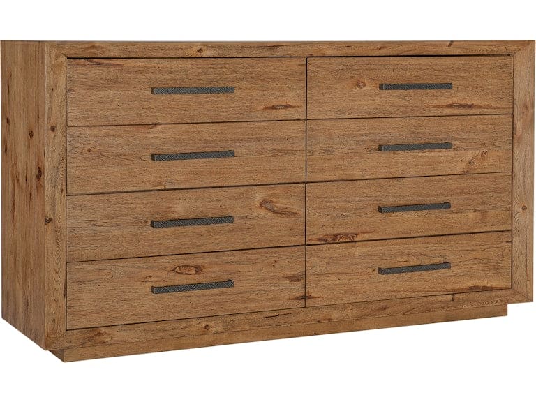 With a clean, simple silhouette, the Big Sky Eight-Drawer Dresser exudes the authenticity of the open spaces of the American wilderness. Crafted of Pecky Hickory Veneers and Cedar with a solid-wood edged top, the dresser is finished in the warm Vintage Natural. The drawers are self-closing and the top left has a removable felt liner, while the top right has a removable liner and felt jewelry tray. Both bottom drawers are cedar-lined. The natural beauty and near mystical experience of the American wilderness inspires a spirited collection from Hooker Furniture, a celebration of dramatic vistas and the freedom to roam, a land of rough-hewn timber and towering snow-capped peaks, boundless plains, and cool, clear mountain lakes. Hooker brings home a dream of wide-open spaces and a life lived in tandem with iconic landscapes with furnishings that evoke the weight, heft and heritage of post and beam construction, the mark and artistry of true craftspeople, and substantive, thoughtful designs right for today. Watch for warm, rustic, hickory veneer, and rich finishes like charred timber, dusk, and avalanche, organic textures like burlap and top grain leather, forged hardware, and classic moldings for the traditionalist. Those with a more modern bent will gravitate toward the clean lines of waterfall edges, crosshatch surfaces and planking details that speak to authenticity and the hand of the maker. Welcome to the peaceful, easy feeling of Big Sky. It’s time to simply breathe.