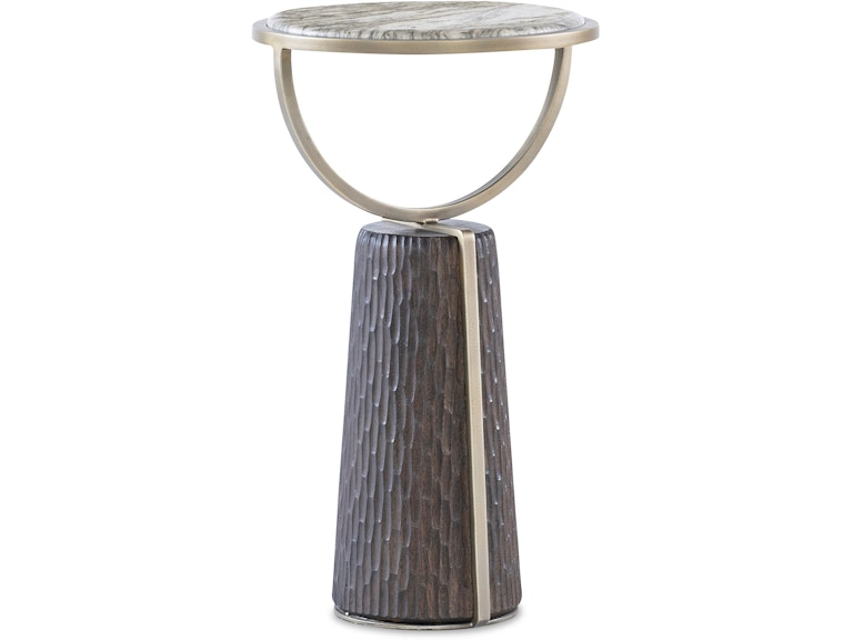 Compact yet artful, this round accent table pairs a carved wood base with a marble top rich in natural tones. Ideal as a side table for modern boho, earthy, or eclectic interiors. Targeting the next generation of furniture buyers, Hooker Furniture unveils the Commerce & Market brand of accent and occasional pieces. Interior designers were front-of-mind when the Hooker Furniture team developed the dynamic palette and flexible applications of pieces within the new brand. The assortment of modern and updated designs presented within the brand include a dynamic variety of materials, styles and color palettes to inject a younger sensibility into the company’s portfolio. Commerce & Market consists of pieces for the living room including a variety of accent tables, credenzas, consoles, chests, cabinets, etageres and bar carts. Globally sourced with design inspiration from around the world, the curated designs feature an eclectic assortment of materials including cast metals, bone inlay, marble, stone, travertine, painted glass, acacia solids, pecan, oak, mango wood, and walnut veneers in a variety of rich finishes.