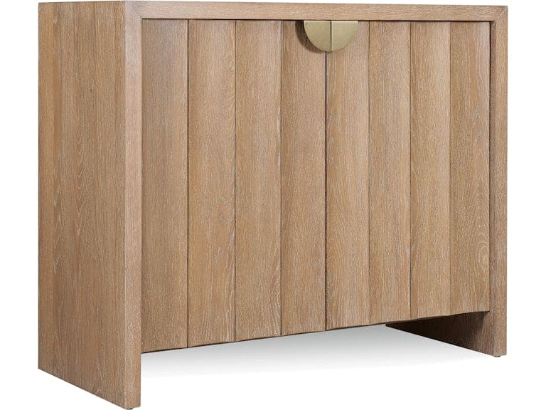 Two scalloped-front doors reveal adjustable shelving inside this compact oak cabinet. Light wood finish brings a relaxed, casual charm. Targeting the next generation of furniture buyers, Hooker Furniture unveils the Commerce & Market brand of accent and occasional pieces. Interior designers were front-of-mind when the Hooker Furniture team developed the dynamic palette and flexible applications of pieces within the new brand. The assortment of modern and updated designs presented within the brand include a dynamic variety of materials, styles and color palettes to inject a younger sensibility into the company’s portfolio. Commerce & Market consists of pieces for the living room including a variety of accent tables, credenzas, consoles, chests, cabinets, etageres and bar carts. Globally sourced with design inspiration from around the world, the curated designs feature an eclectic assortment of materials including cast metals, bone inlay, marble, stone, travertine, painted glass, acacia solids, pecan, oak, mango wood, and walnut veneers in a variety of rich finishes.