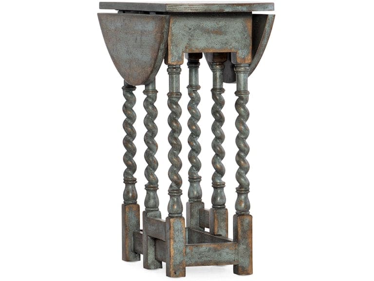 With chic curvy legs and a chunky base, the Prause Gate Leg Table is reminiscent of European antiques brought to this country by immigrants during the time of America's westward expansion. This character-filled piece is also practical. Put the drop leaves down for a snug fit next to the sofa, but raise them up to use this piece for an extra table top or serving surface. Finished in the dreamy Blue Bonnet, a soft blue accent finish with a rubbed patina and distressing. Taking the next step in creating a Hill Country family of collections, Hooker Furniture has introduced LaGrange. The anthology of bedroom, living room, dining room, occasional and home office furniture is inspired by the Hill Country region of Texas, including the town of LaGrange, one of the stops made by the Hooker Furniture design team in search of inspiration. The collection includes heavily distressed oak and hickory surfaces, extensive carving and scroll work, aged metals, sedimentary stone and primitive textiles. Each piece has a unique story to tell, while still retaining the authentic American character of the original collection. LaGrange is updated with a fresh new personality, brought to life by four distinctive finishes and modern conveniences for the lifestyles of today.