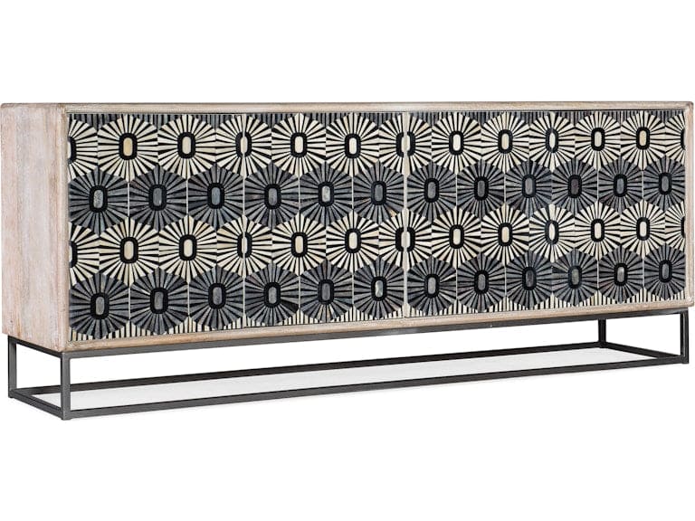 An abstract art pattern created with bone inlay in a black, white and gray color scheme makes the Whitmore Credenza a one-of-a-kind artistic accent. Crafted in Mango Wood, the four-door credenza has a removable shelf behind each pair of doors, a ventilated back panel and wire management. Come closer to Melange, and you will discover something unexpected. An eclectic blending of colors, textures, and materials in a vibrant collection of one-of-a-kind artistic pieces, Melange is meant to inspire you and fuel an experience of self discovery, inspiring a renaissance in your home. Each piece of Melange has its own story. The designs are versatile and timeless, easily transcending from one life stage to the next, from home to home and generation to generation.