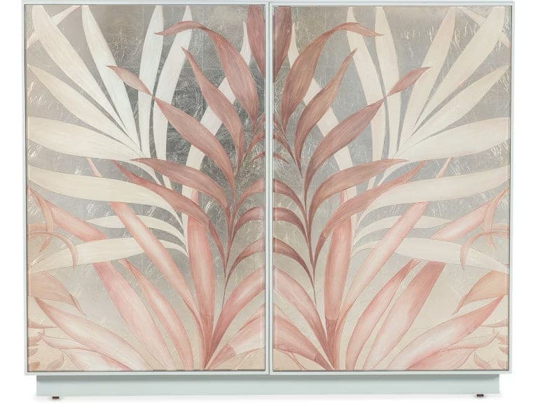 Finish: Mint green exterior. Gold leafed door fronts with hand painted palms in pink, white, gold and silver colors.