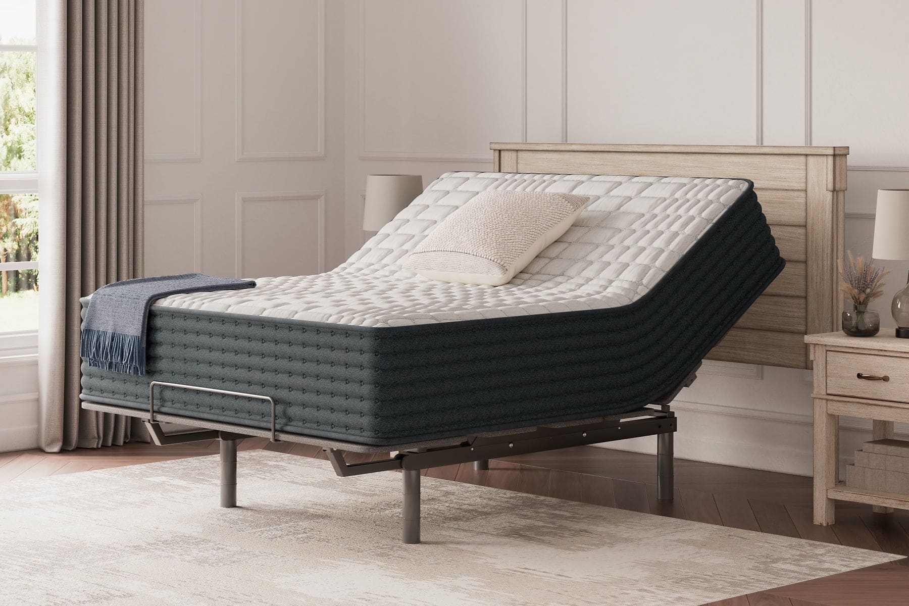 | Details | Comfort level: plush, High-density response memory foam; high-density whisper foam, 720 power packed 15-gauge wrapped coils, Ashley Edge "steel encased"; 2 perimeter rows of 13-gauge wrapped coils for edge support, Base support foam, 4-way stretch cover, Luxury pillow pocket technology, Adjustable base compatible, 10-year non-prorated warranty, Note: Purchasing mattress and foundation from two different brands may void warranty; check warranty for details, Foundation/box spring available, sold separately, Mattress ships in a box; please allow 48 hours for your mattress to fully expand after opening, State recycling fee may apply | |