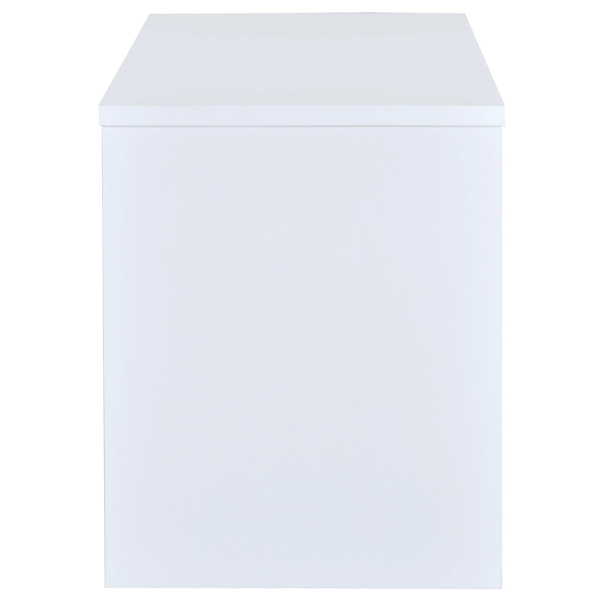 A fresh, energetic ambiance creates design versatility in a compact space. Ideal for a small office or a child's room, this office desk is built to impress. With a bright white finish, it delivers an enticing and invigorating flavor. Enjoy the flexibility of a reversible setup that positions its drawer and file cabinet unit on the left or right side. This modular-style office desk provides a spacious writing surface, a storage drawer, and a file cabinet that accommodates both legal and letter size documents.