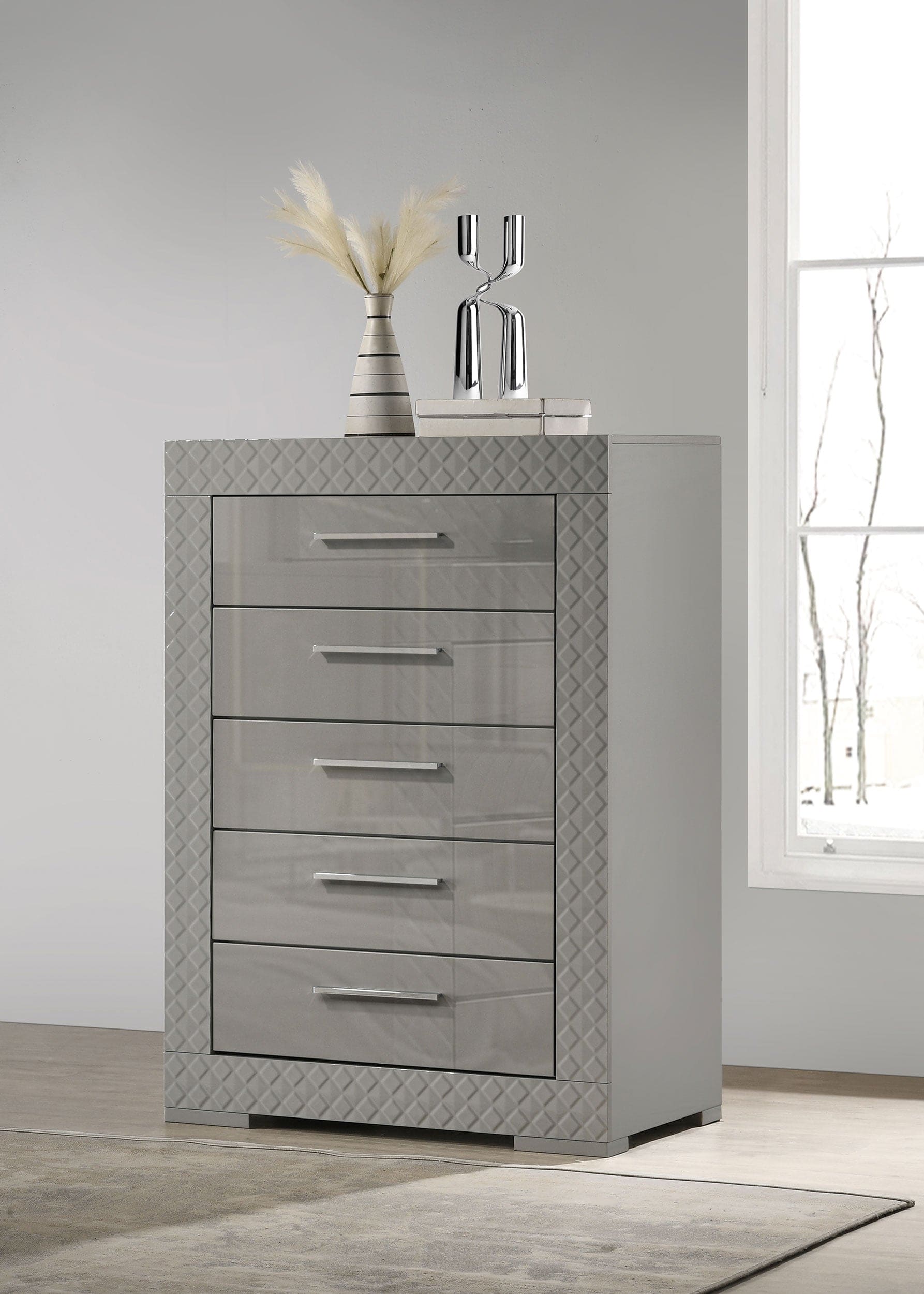 Ives 5-drawer Bedroom Chest of Drawers Grey High Gloss