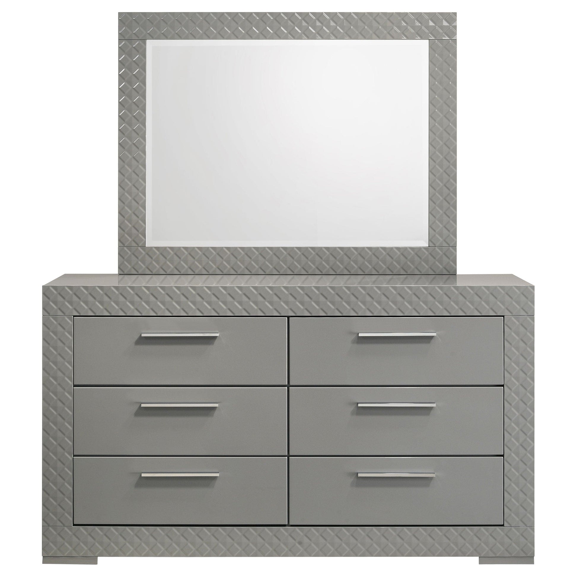 Ives 6-drawer Dresser and Mirror Grey High Gloss