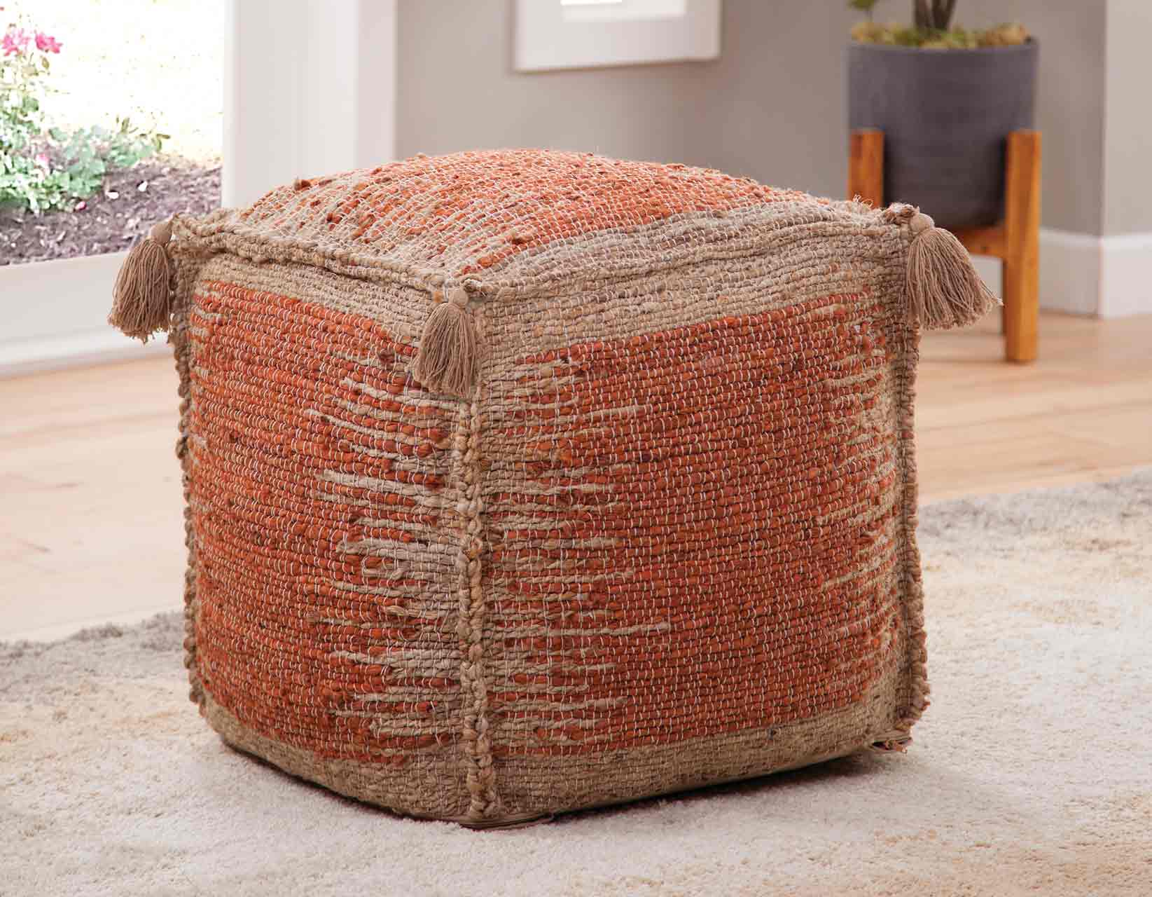 Kick up your feet with these handwoven pieces of fun! Poufs are great as a footrest, for extra seating or even to use as a pillow when laying on the floor. These stuffed, upholstered pieces are versatile and feature custom designs on each piece. The Jafar features a flame-stitched pattern on each side, accented with a khaki tassle that adds a little spunk to your relaxation. Jafar softens a room while adding comfort and functionality to your style.