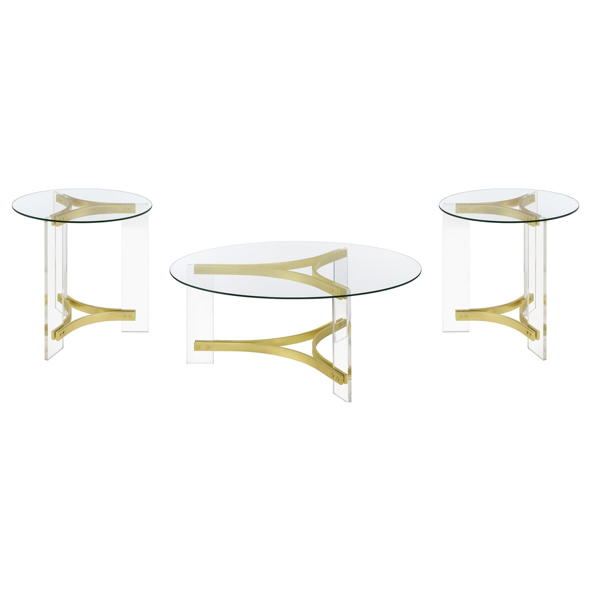 Janessa 3-piece Acrylic Coffee and End Table Set Matte Brass