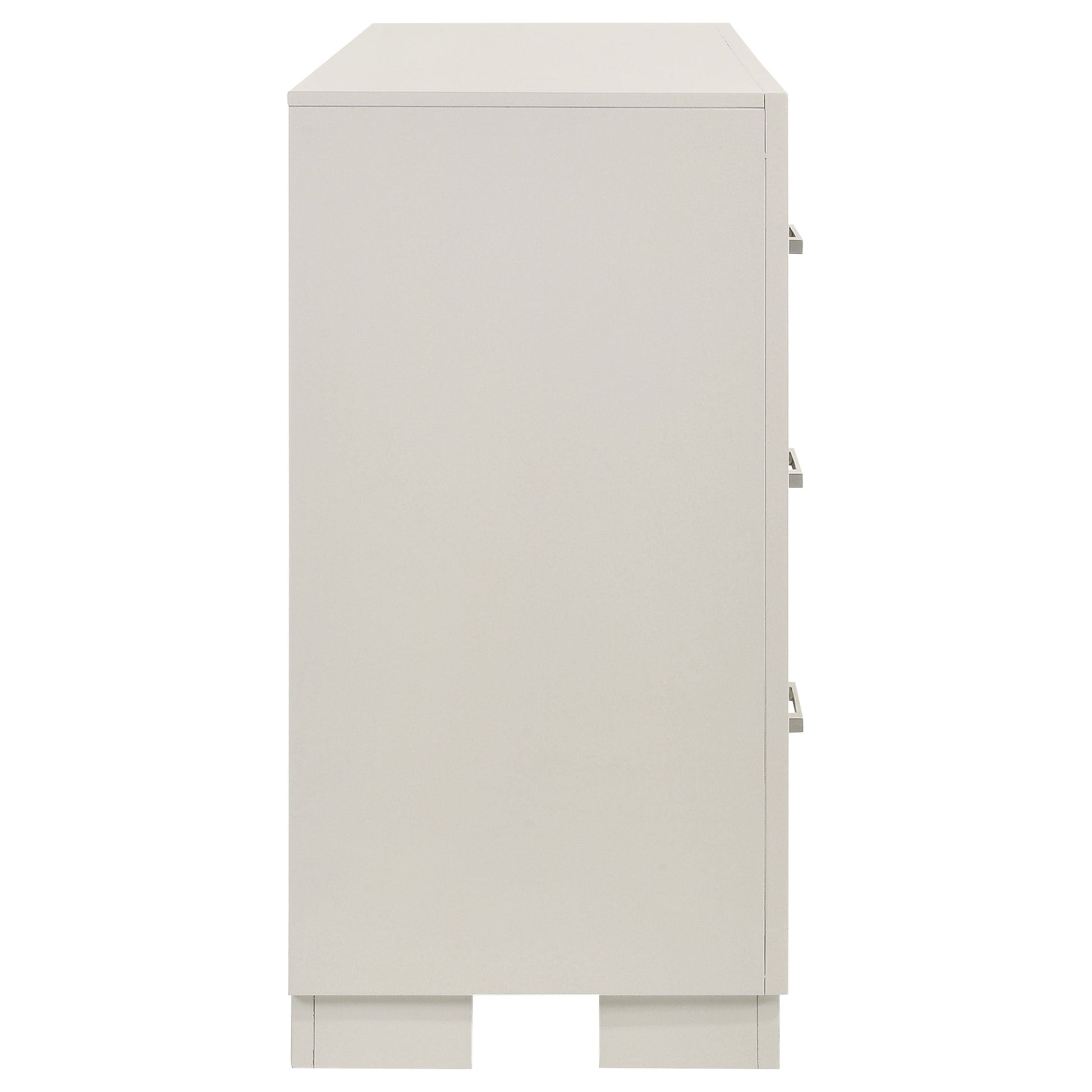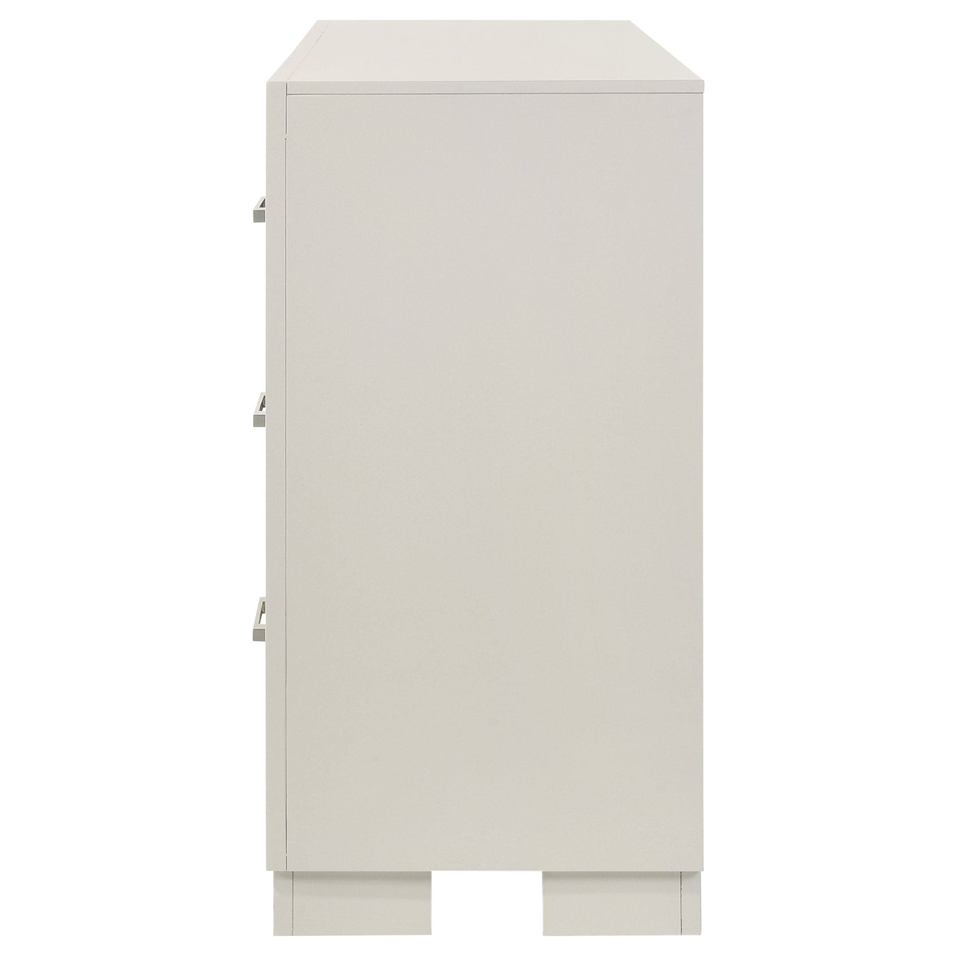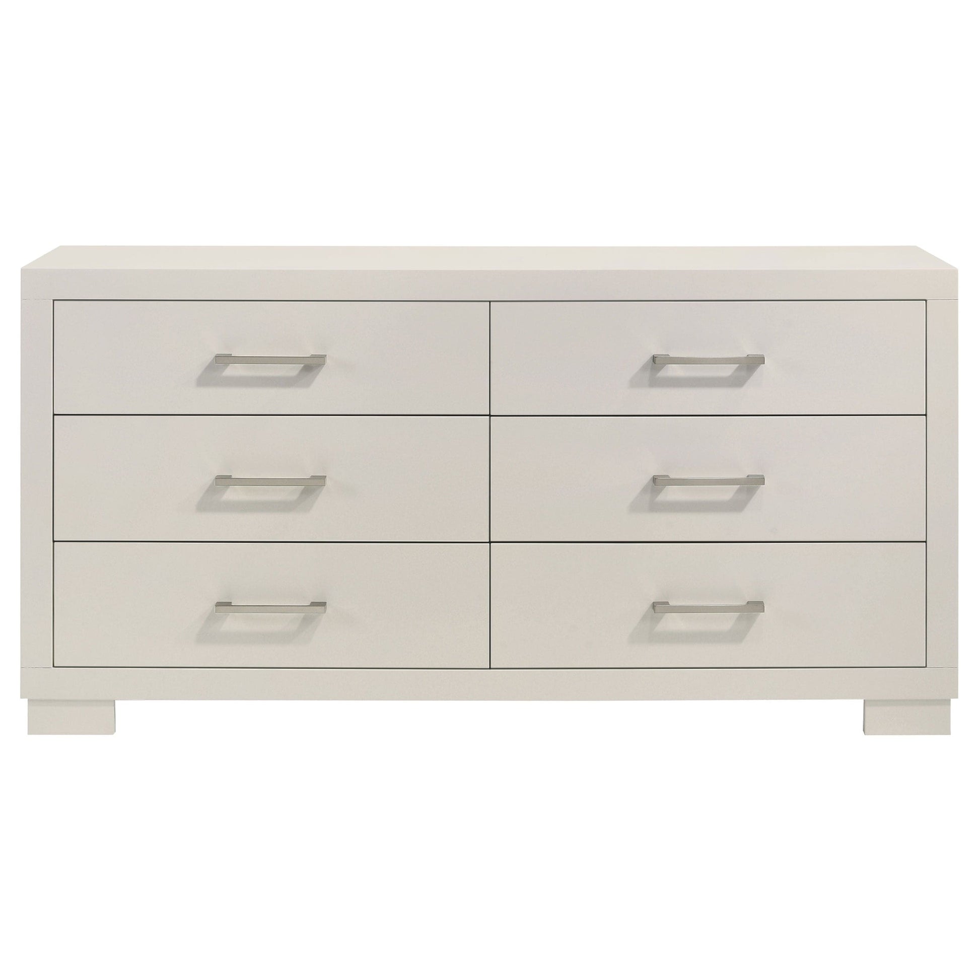• Cool six-drawer dresser with crisp silhouette and smooth modern form