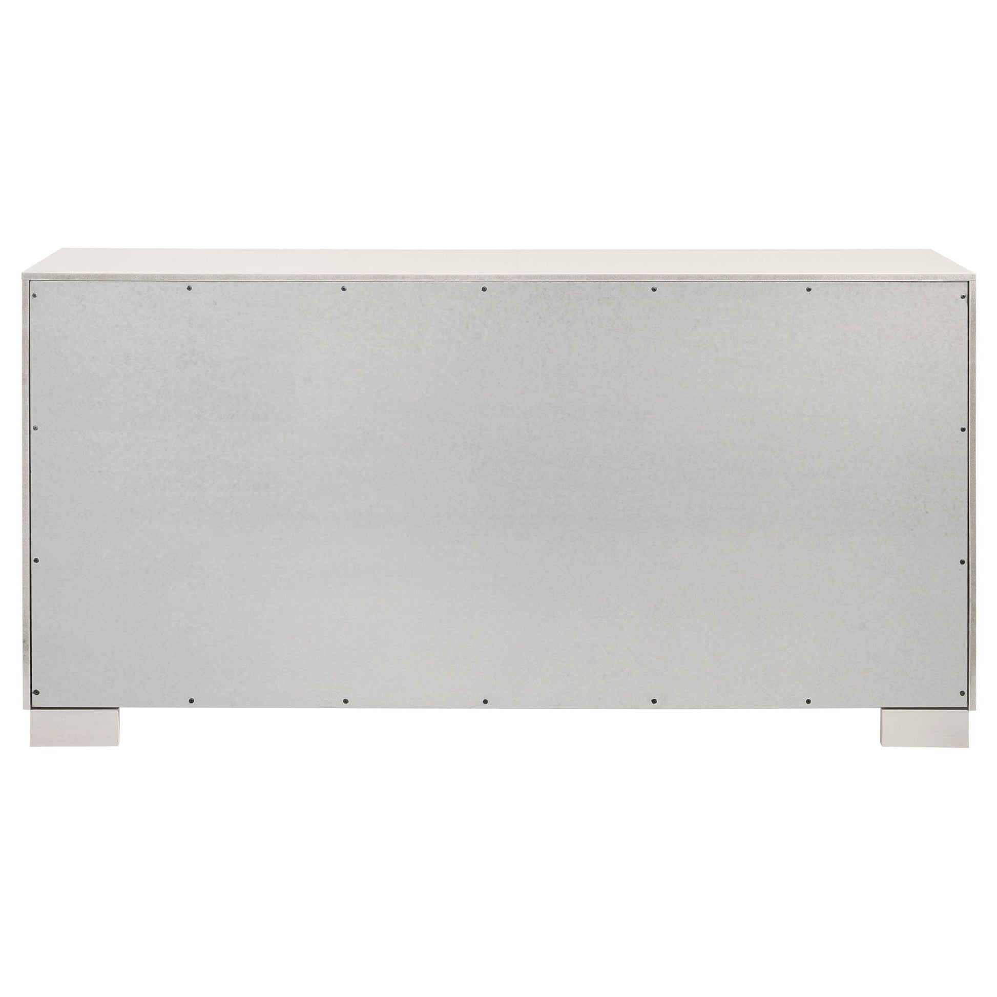 • Silver-tone bar pulls highlight the dresser’s sleek contemporary look