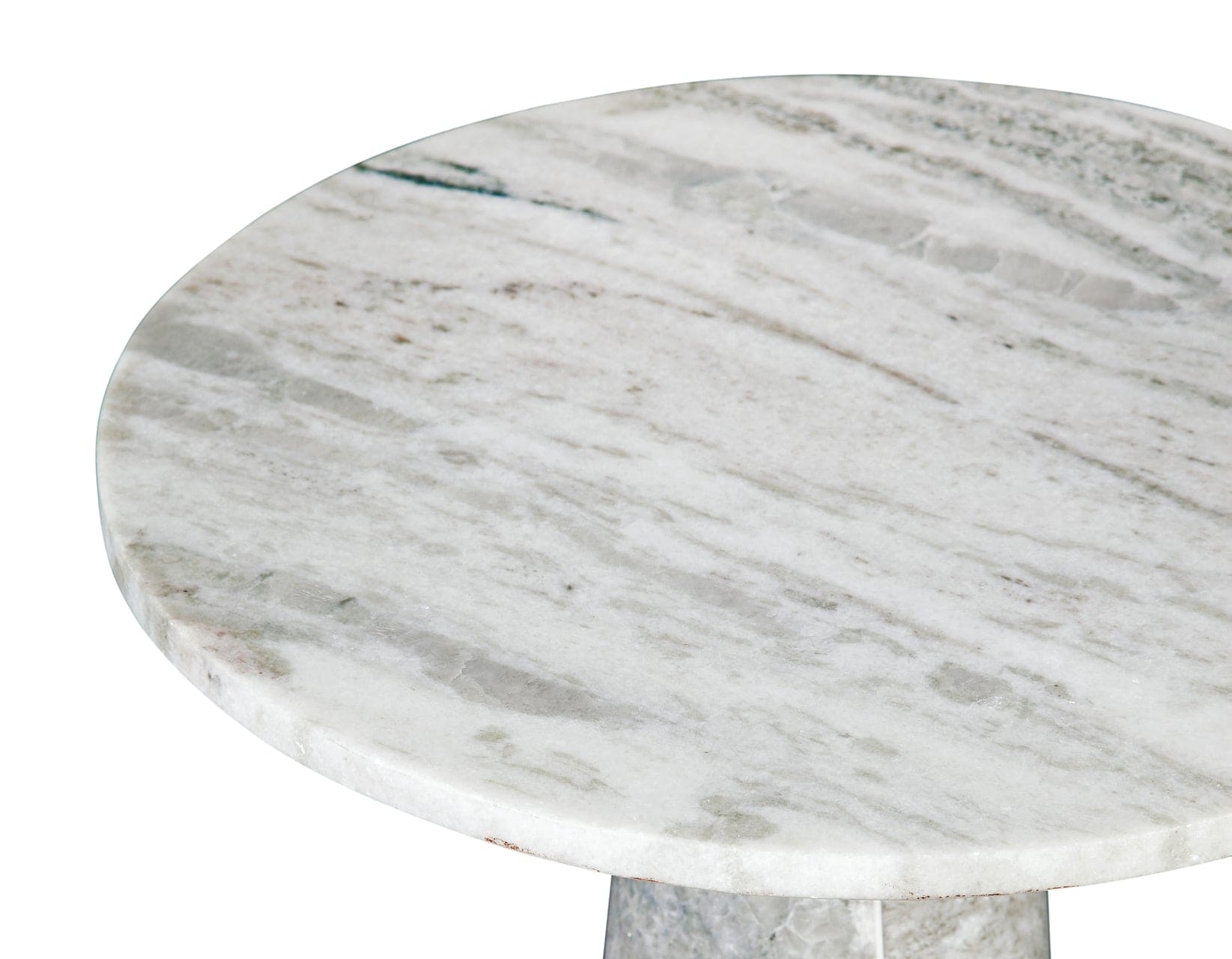 The Joni Accent Table combines natural elegance with sculptural design. Its 18-inch round Fantasy Gray marble top rests on a graceful teardrop-shaped base, each piece uniquely veined with soft earth-toned swirls and warm undertones. Mined and hand-finished, no two are exactly alike. Perfect beside a chair or as a nightstand, Joni brings warmth, luxury, and organic texture to any space—a true statement piece that highlights the timeless artistry of natural stone