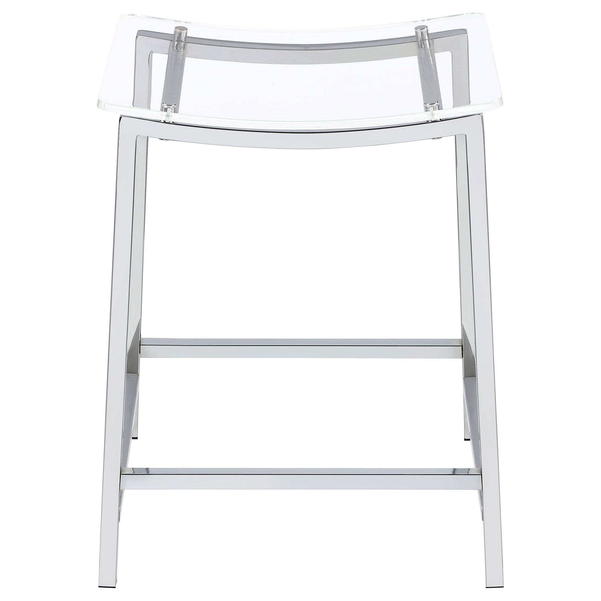 Pull up a stool and enjoy a casual modern entertaining experience from the privacy of your home. This set of two counter-height stools reflects ultra-contemporary design standards using crisp modern materials. Gleaming chrome finish metal framing includes a two-bar seat support and built-in footrests. A gently curved seat made of acrylic reveals the nuts and bolts of metal framing. Add this stool set to a sleek kitchen island or lounge space.