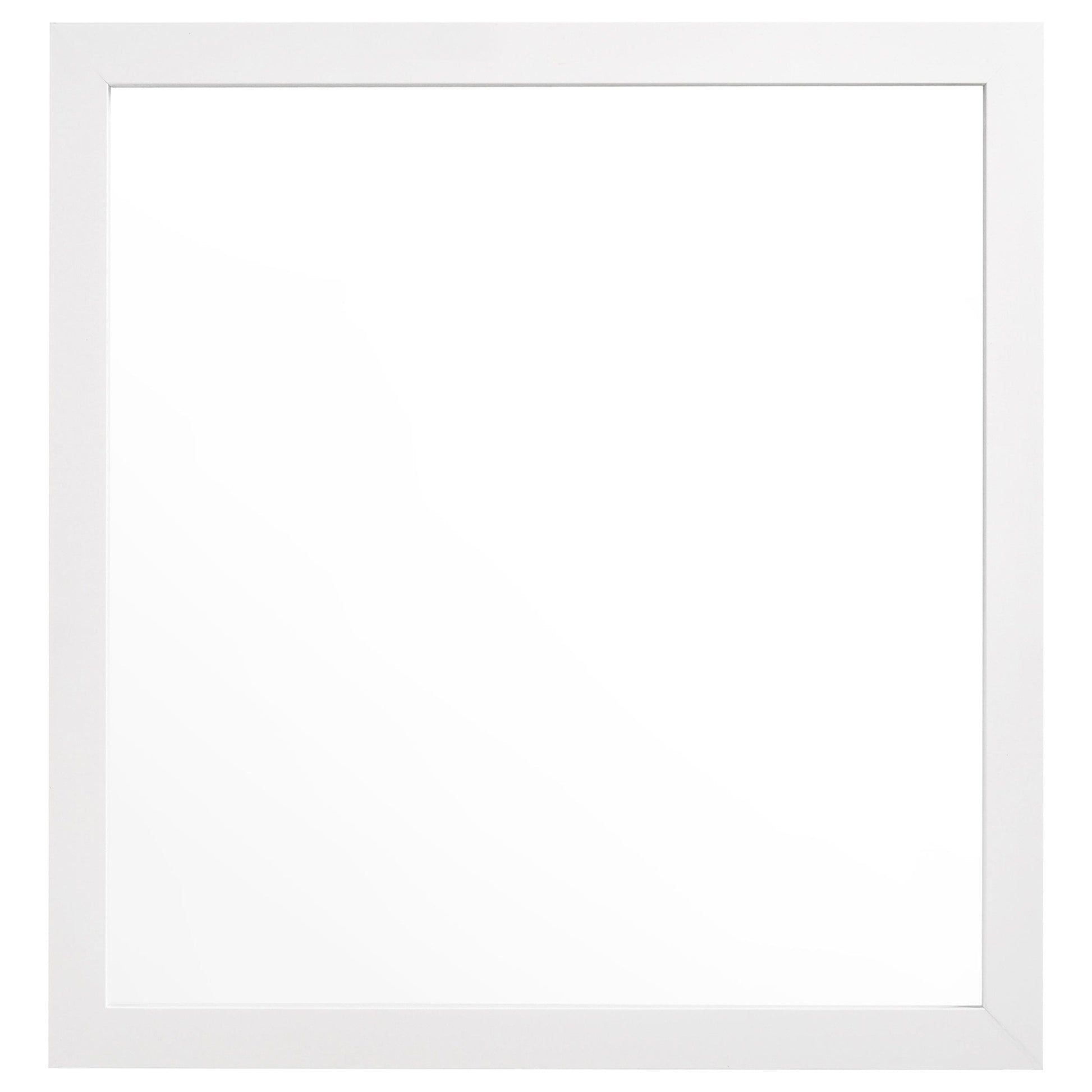 • Upholstered in a bright, white leatherette throughout the platform bed frame