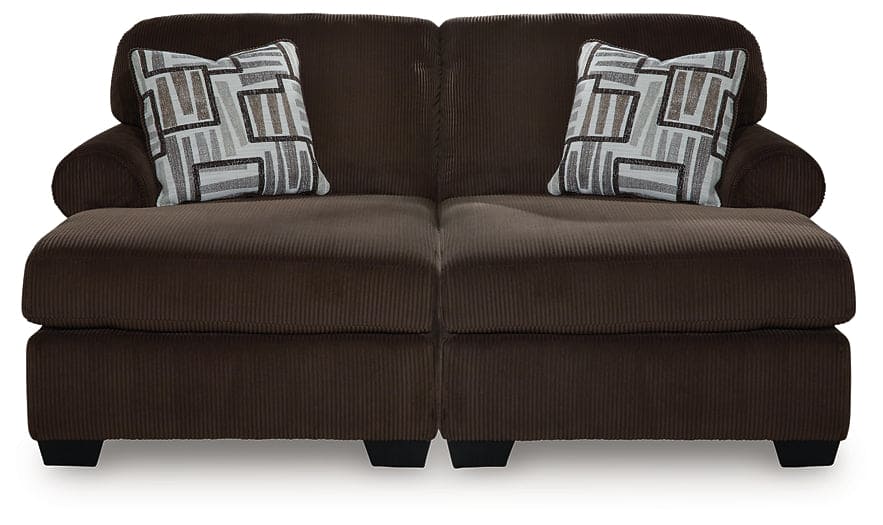 | Details | Includes 2 pieces: left-arm facing corner chaise and right-arm facing corner chaise, "Left-arm" and "right-arm" describe the position of the arm when you face the piece , Corner-blocked frame , Attached back and loose seat cushions, High-quality foam cushions wrapped in poly fiber, Accent pillows included, Pillows with soft polyfill, Polyester upholstery, Exposed feet with faux wood finish , Platform foundation system resists sagging 3x better than spring system after 20,000 testing cycles by providing more even support, Smooth platform foundation maintains tight, wrinkle-free look without dips or sags that can occur over time with sinuous spring foundations | |