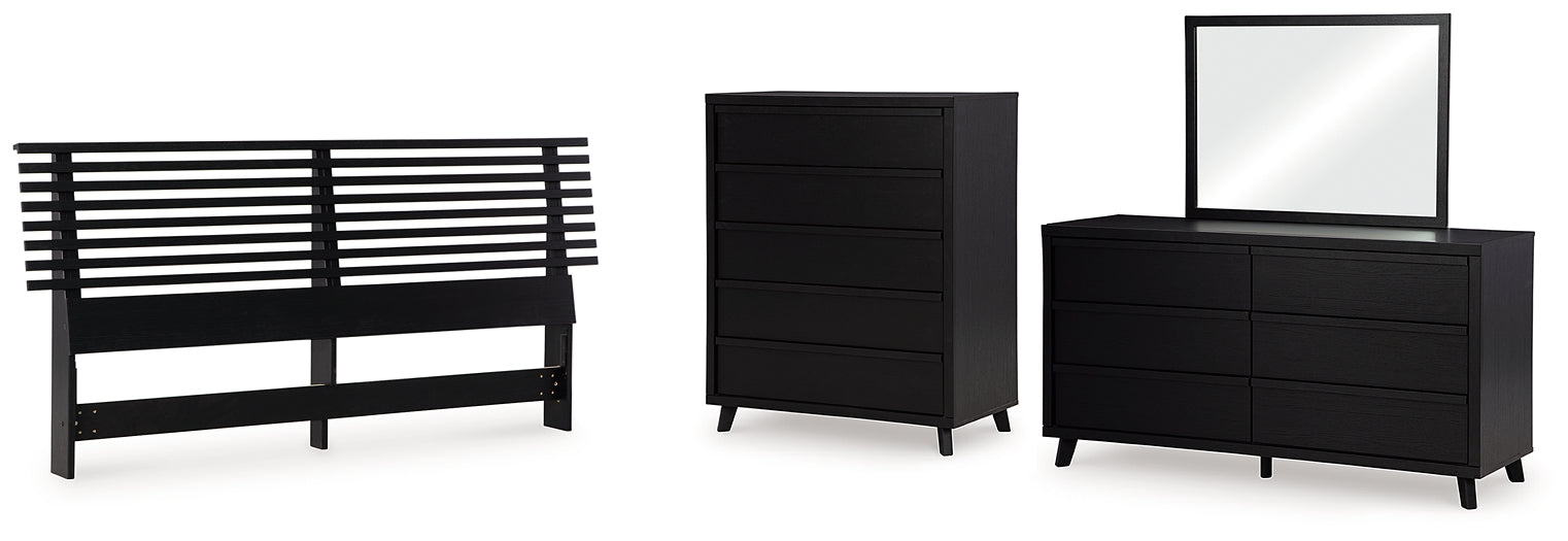 Danziar King Panel Headboard with Mirrored Dresser and Chest