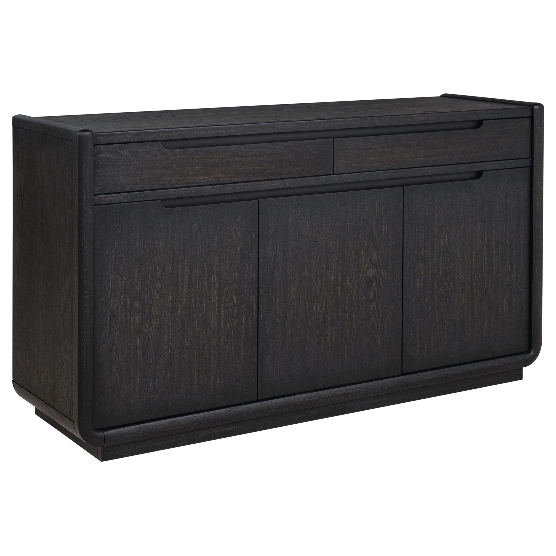 • Dining sideboard in burnished black with sculpted edges and clean, recessed pulls