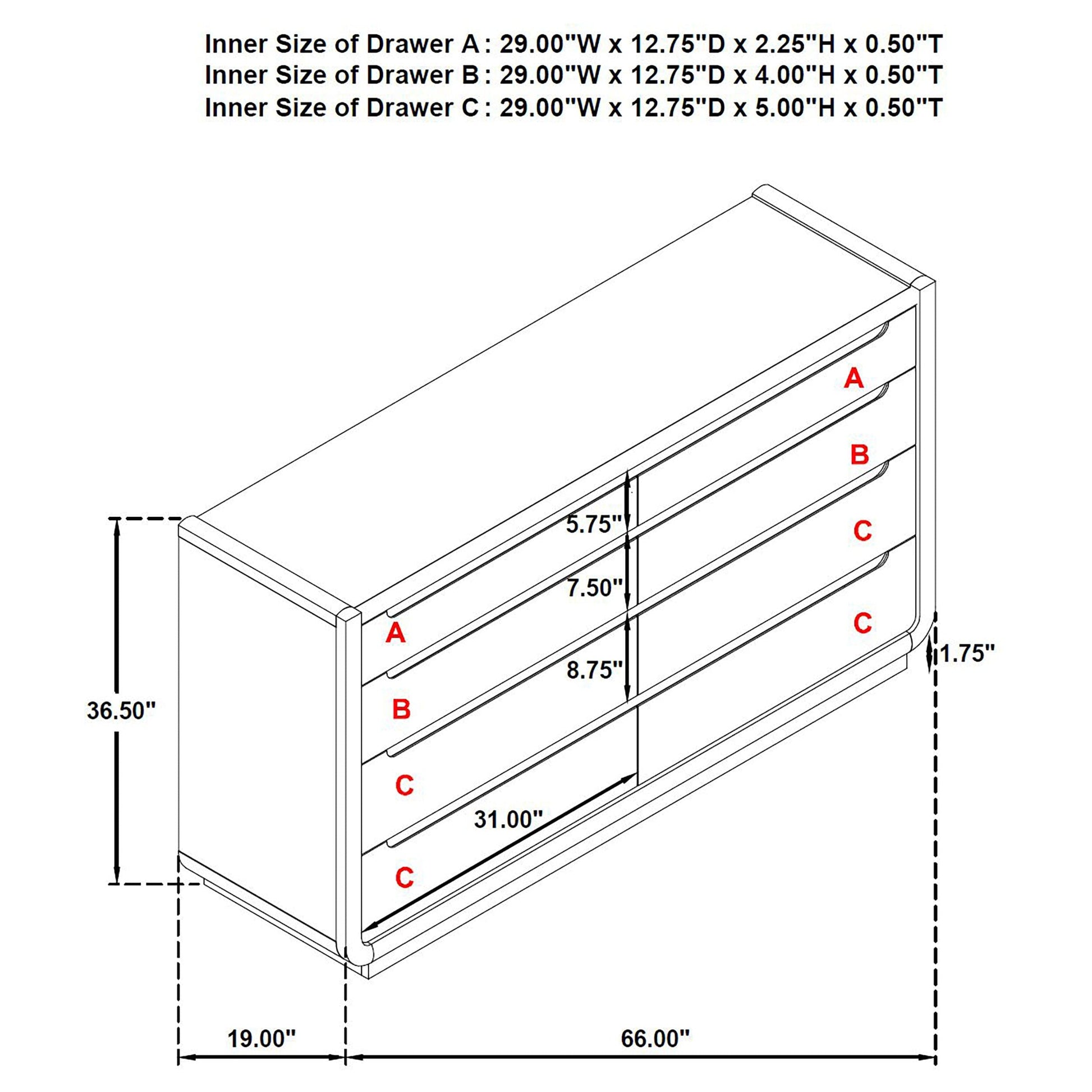 • Drawer Weight Limit: 60 Lbs