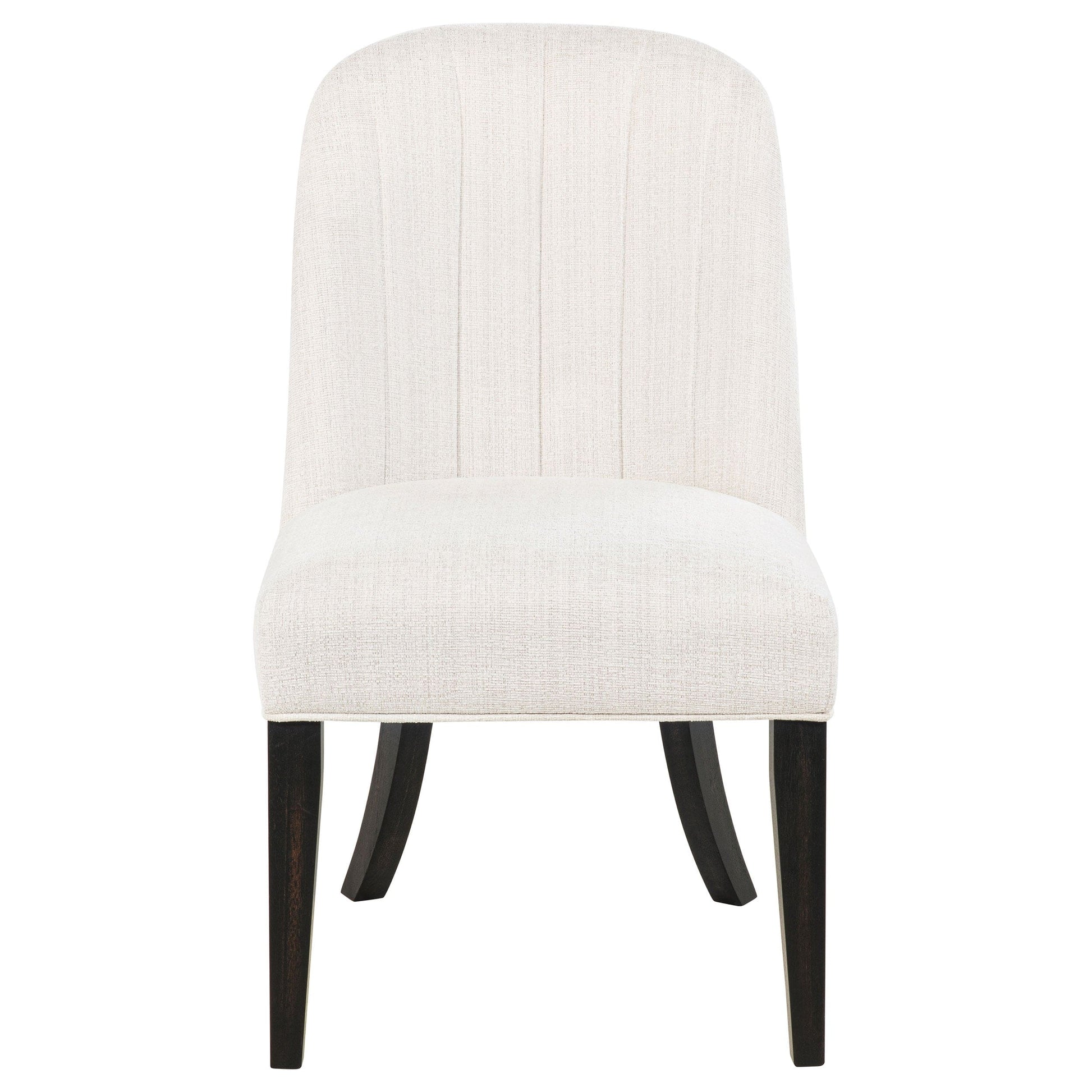 • Side chairs upholstered in cream fabric with soft vertical channel detailing