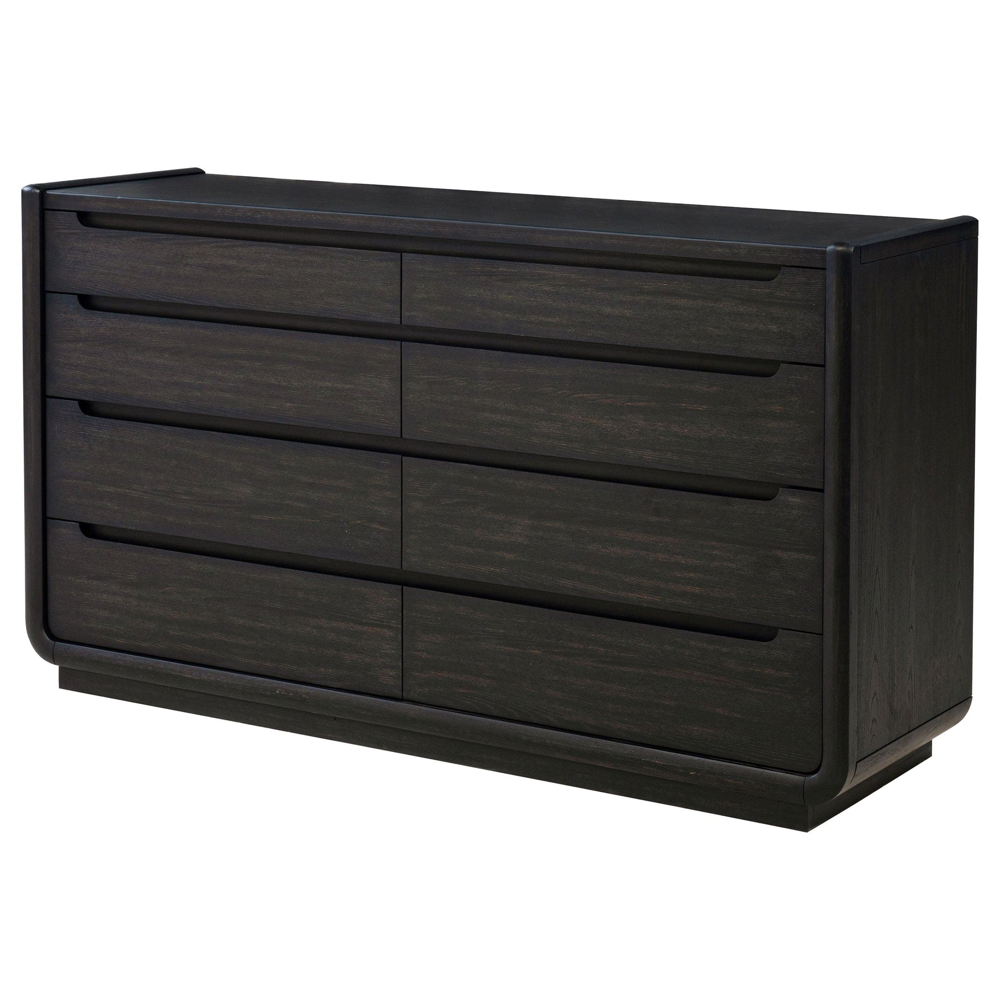 Defined by smooth curves and a rich burnished black finish, this eight-drawer dresser offers everyday functionality with refined simplicity. Its soft, rounded corners and minimalist drawer pulls speak to a modern sensibility, while black felt-lined top drawers cradle delicate pieces in quiet luxury. Soft-closing glides and dovetail joinery ensure lasting performance, while a dust panel base protects what’s tucked away. Crafted for balance and beauty, it’s both grounded and graceful.