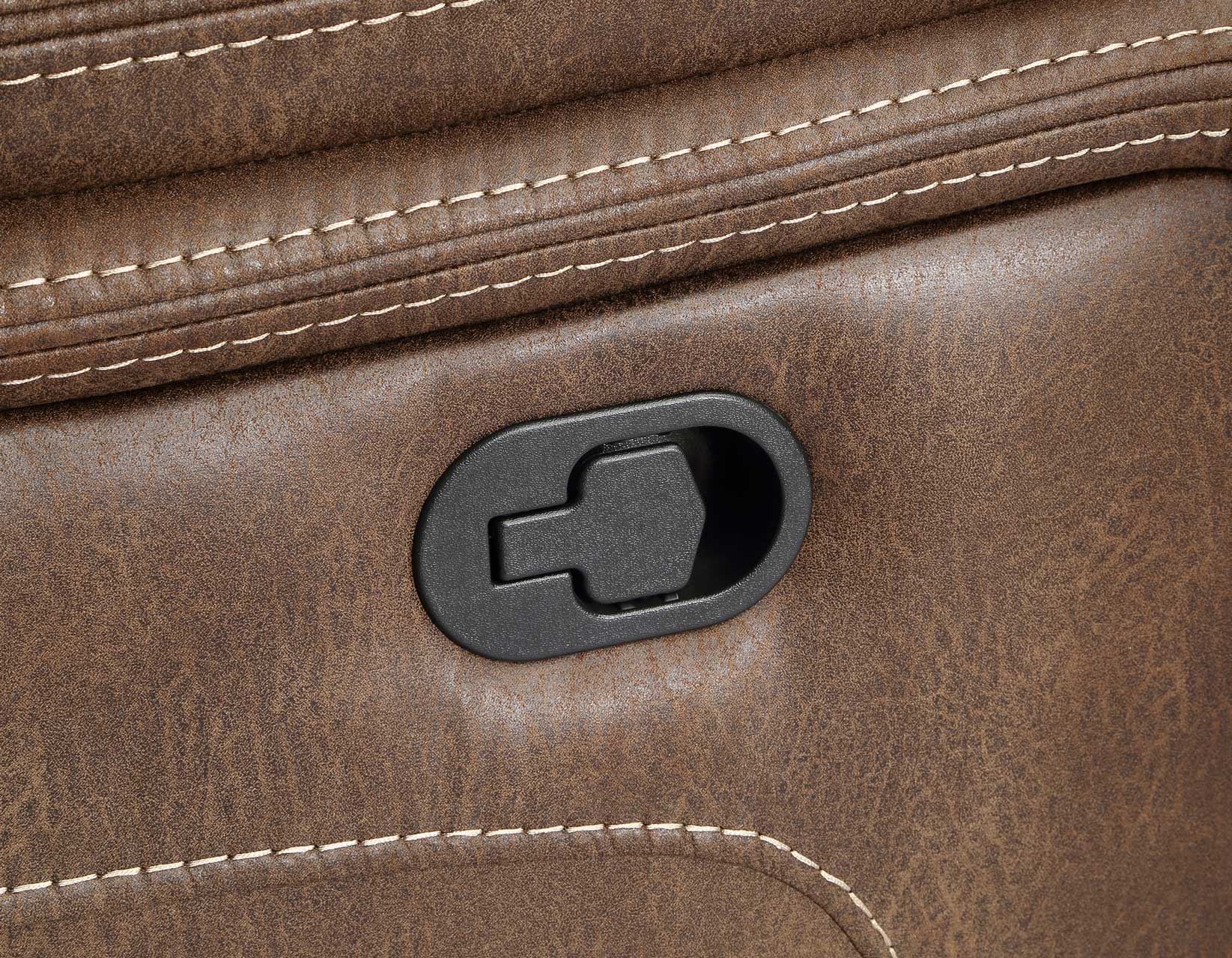 Comfort, convenience and style blend beautifully in the six-piece Lehi modular Sectional. Covered in a warm brindle-colored breathable leatherette, the Lehi features luxurious shaped seats with contrasting stitching for a seat as good-looking as it is comfortable. The manual footrest opens easily with the pull-lever control and the Lift-Top Console adds storage and USB charging ports for a central hub for all your electronics. The modular configuration allows you to custom-build your own set to exactly match your desired area.