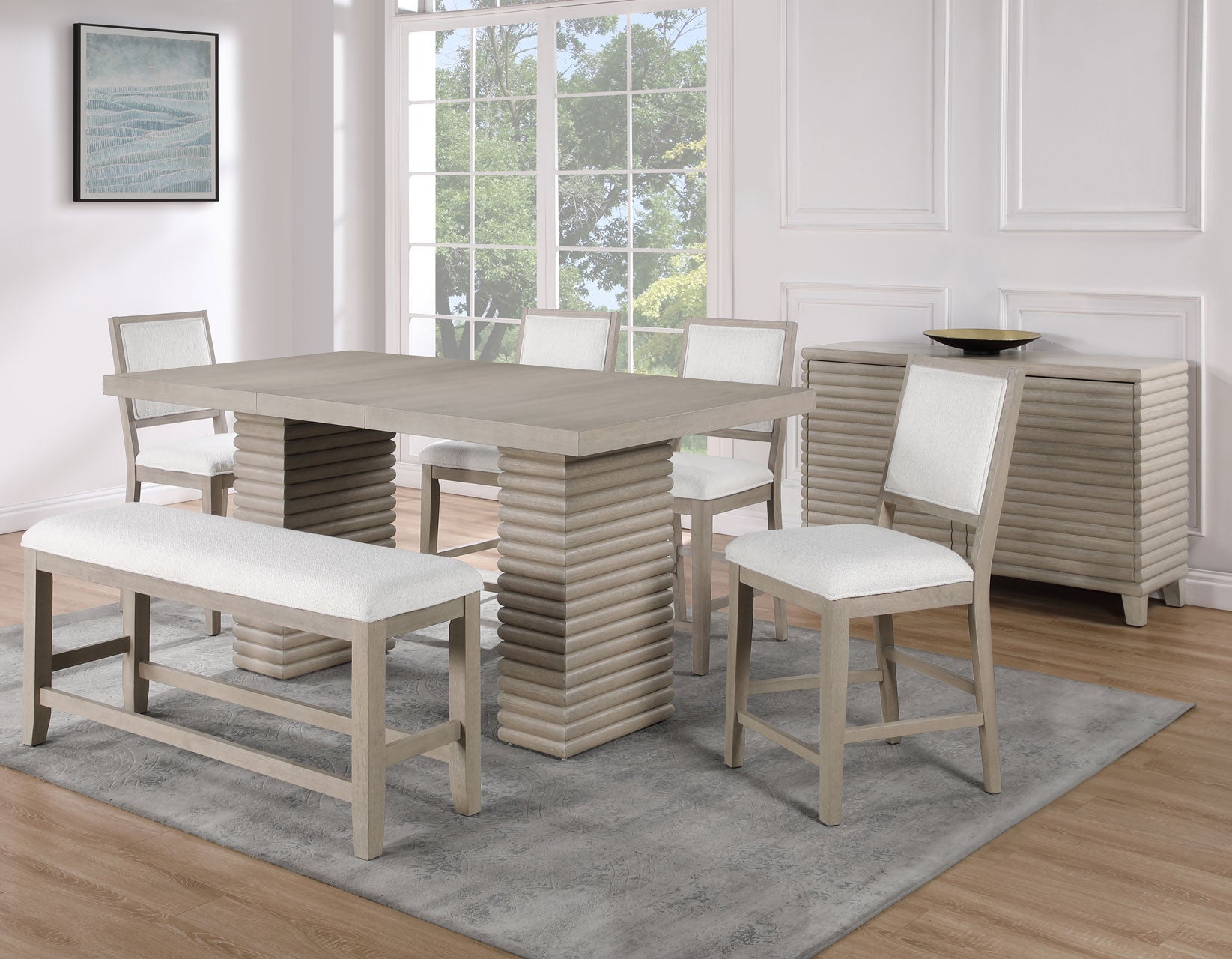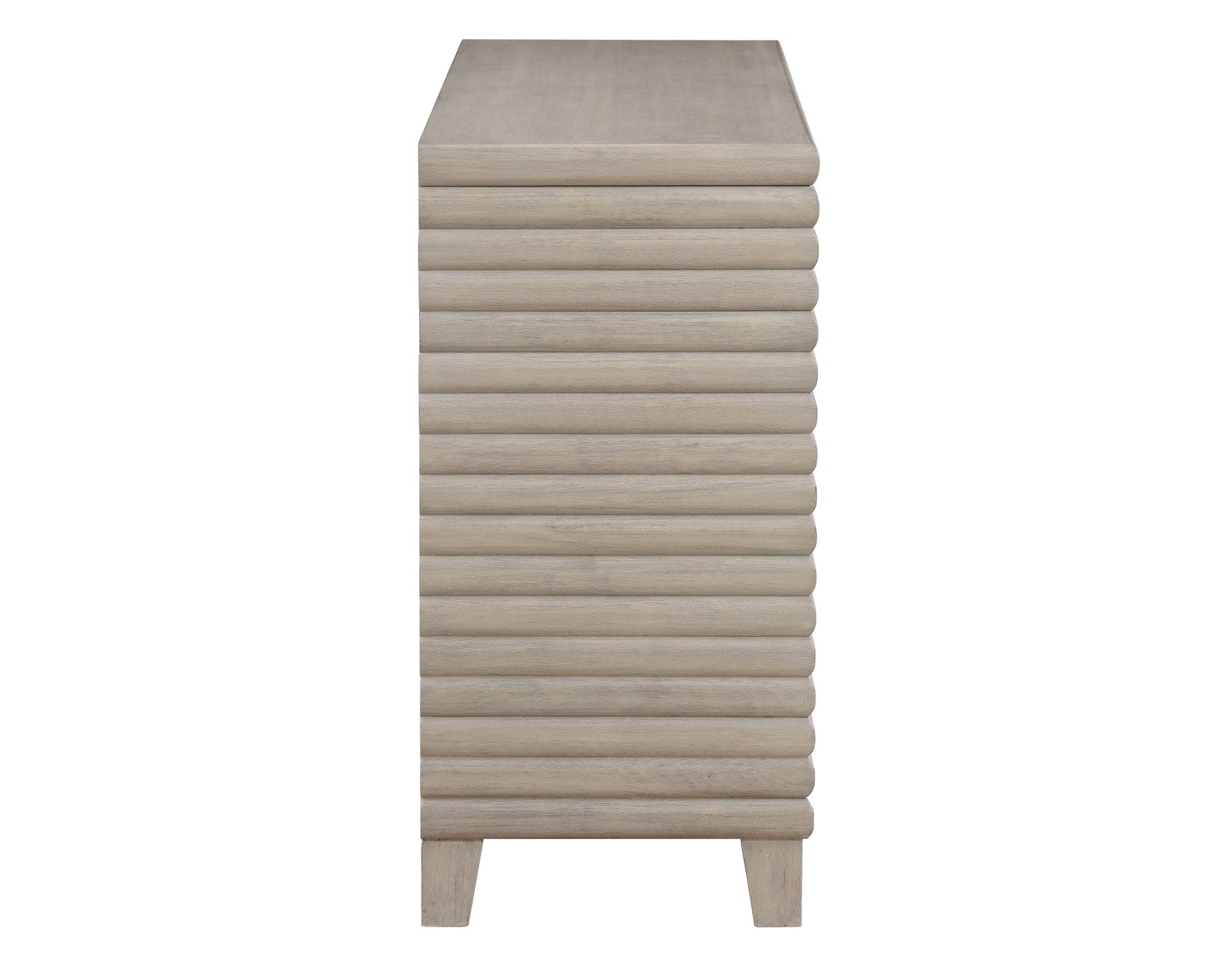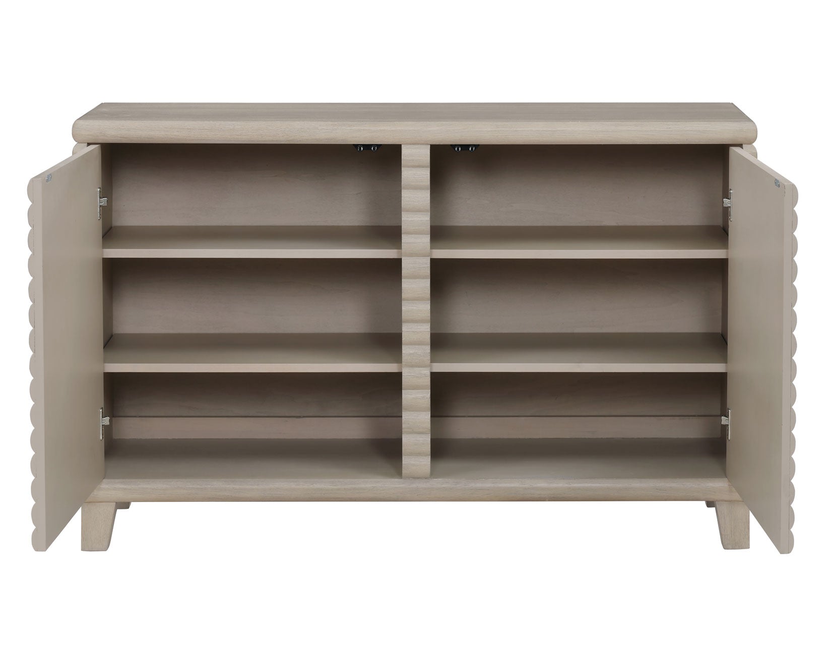 The Lily 54-inch Server offers modern elegance with its greige finish and horizontal reeded doors crafted from ash veneers and solid hardwoods, Soft-touch open doors offer effortless access to your dining essentials while creating a clean exterior without the need for hardware. The European concealed hinges maintain the server’s polished appearance. Inside, four adjustable shelves offer versatile storage options for items of various sizes, ensuring practicality meets style seamlessly. Enhance your dining experience with the functional elegance of the Lily 54-inch Server.