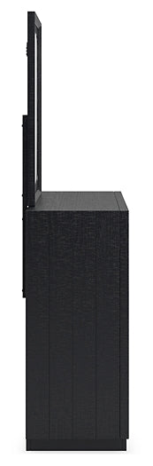 | Details | Includes dresser and mirror, Made with pine solids, veneers and engineered wood substrate, Textured black wood stain with waxy topcoat, Hardware-less design, 6 drawers with fully finished interiors, dovetail construction and ball-bearing side glides (top drawers felt lined), Mirror attaches to back of dresser | |