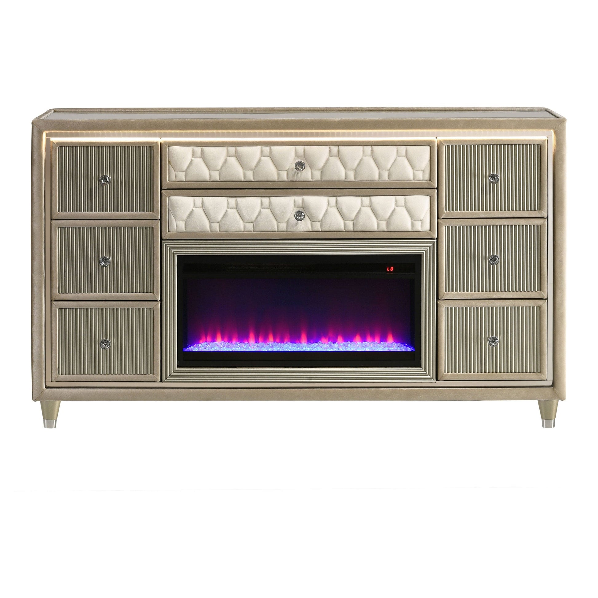 Lorient 8-drawer LED Bedroom Flame Box Dresser Ivory Camel