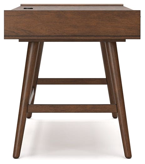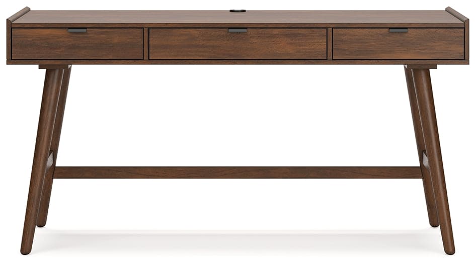 A refreshed take on retro aesthetics. This home office desk adds an air of playful simplicity to your workspace, capturing the architectural language of mid-century stylings. Subtle in design, it invites the eye with a sleek, open frame. A casual, yet timeless, finish and three storage drawers complete this study in form and function.
