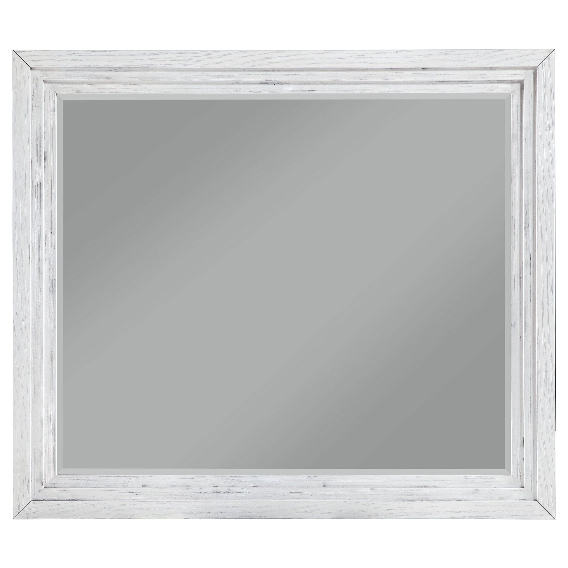 • A transitional dresser mirror features a rectangular silhouette and adds dimension and depth