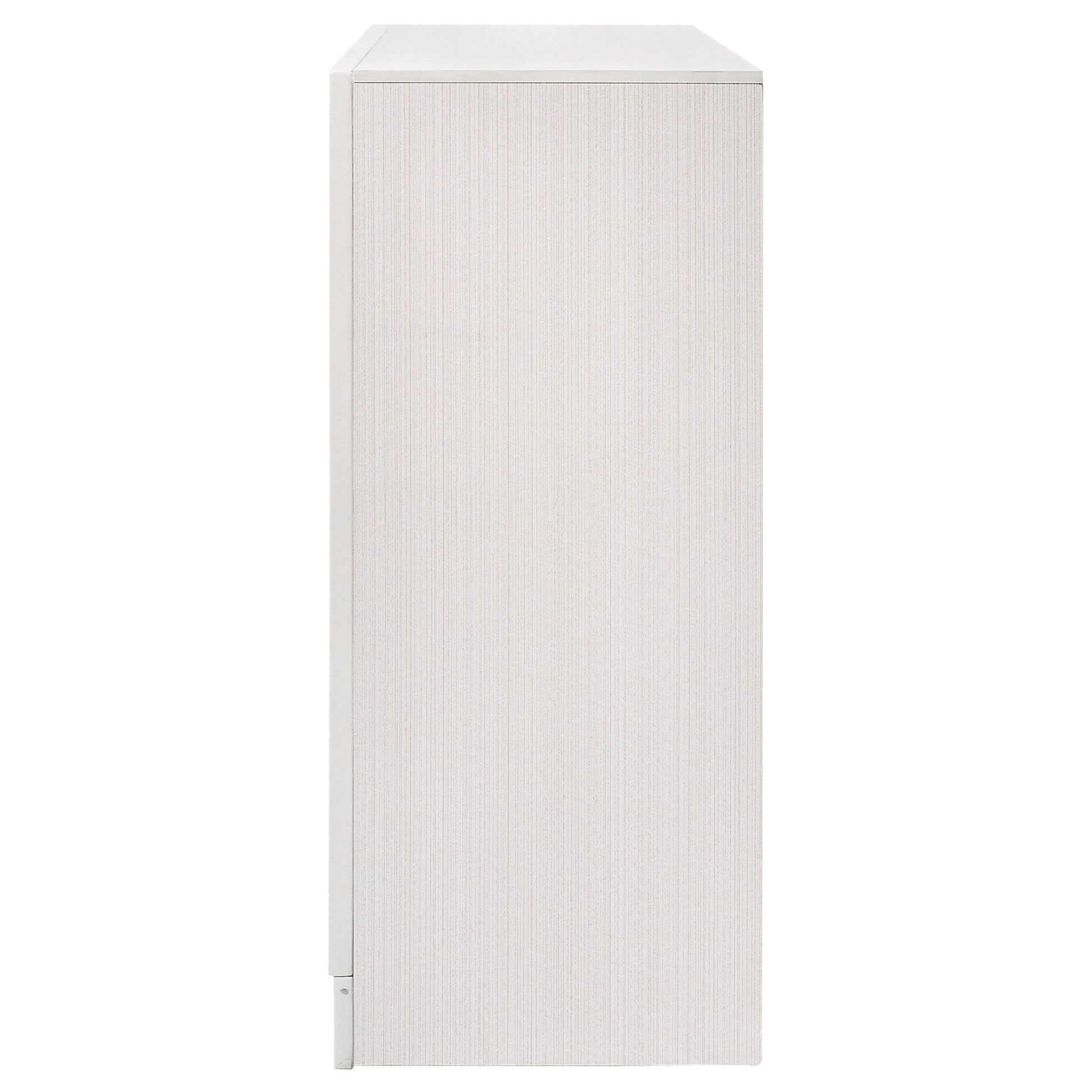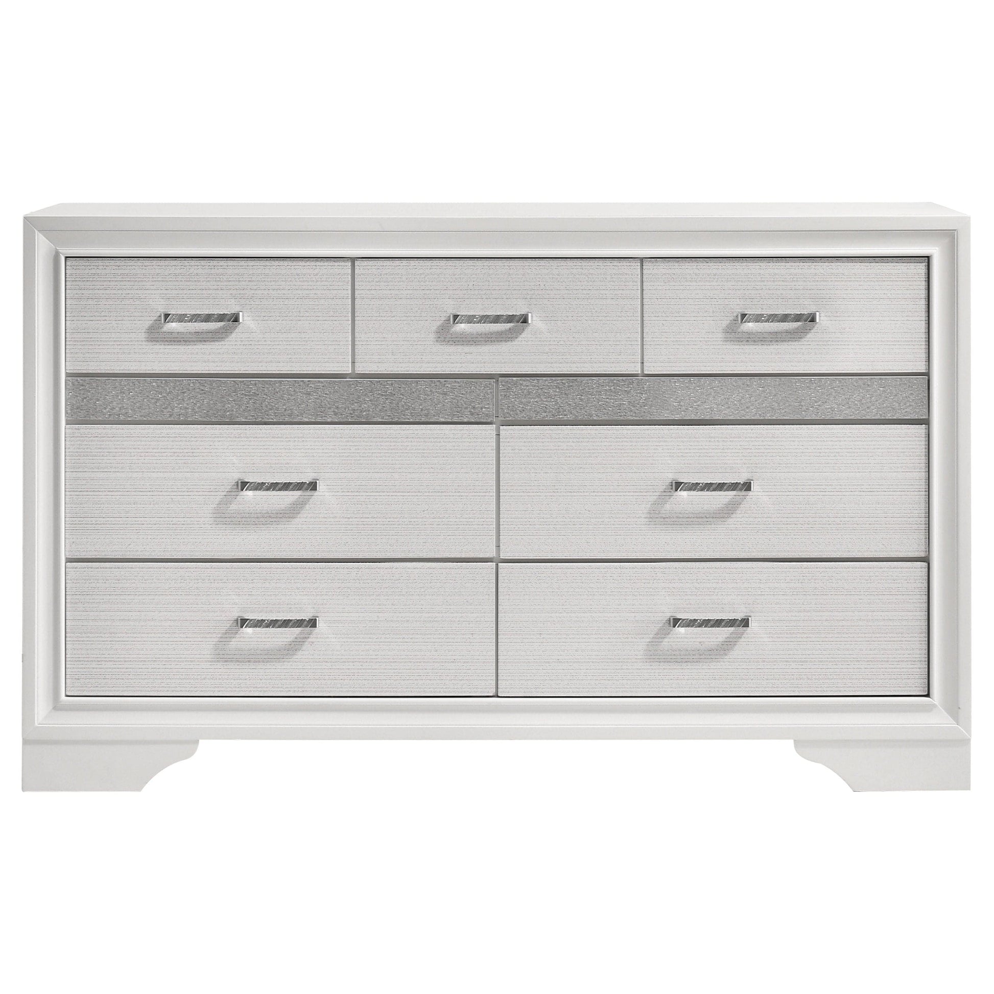 Infuse your space with sophisticated grace. The chic design of this beautiful dresser lends a touch of elegance to any bedroom. Felt-lined drawers keep delicate belongings safe and secure. A hidden jewelry drawer offers a discreet place to store your valuables. Complete with a glittery panel across the front, this piece exudes sparkling opulence.
