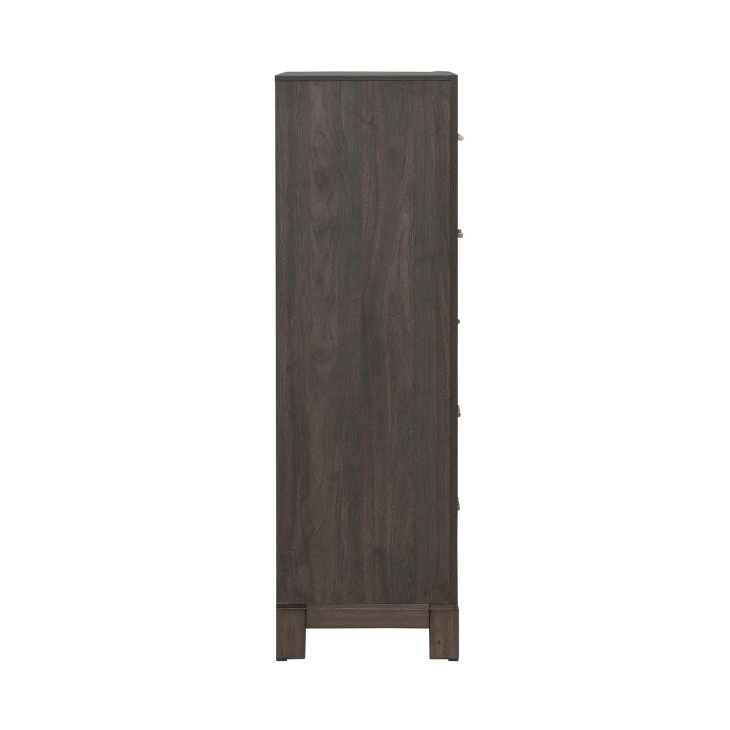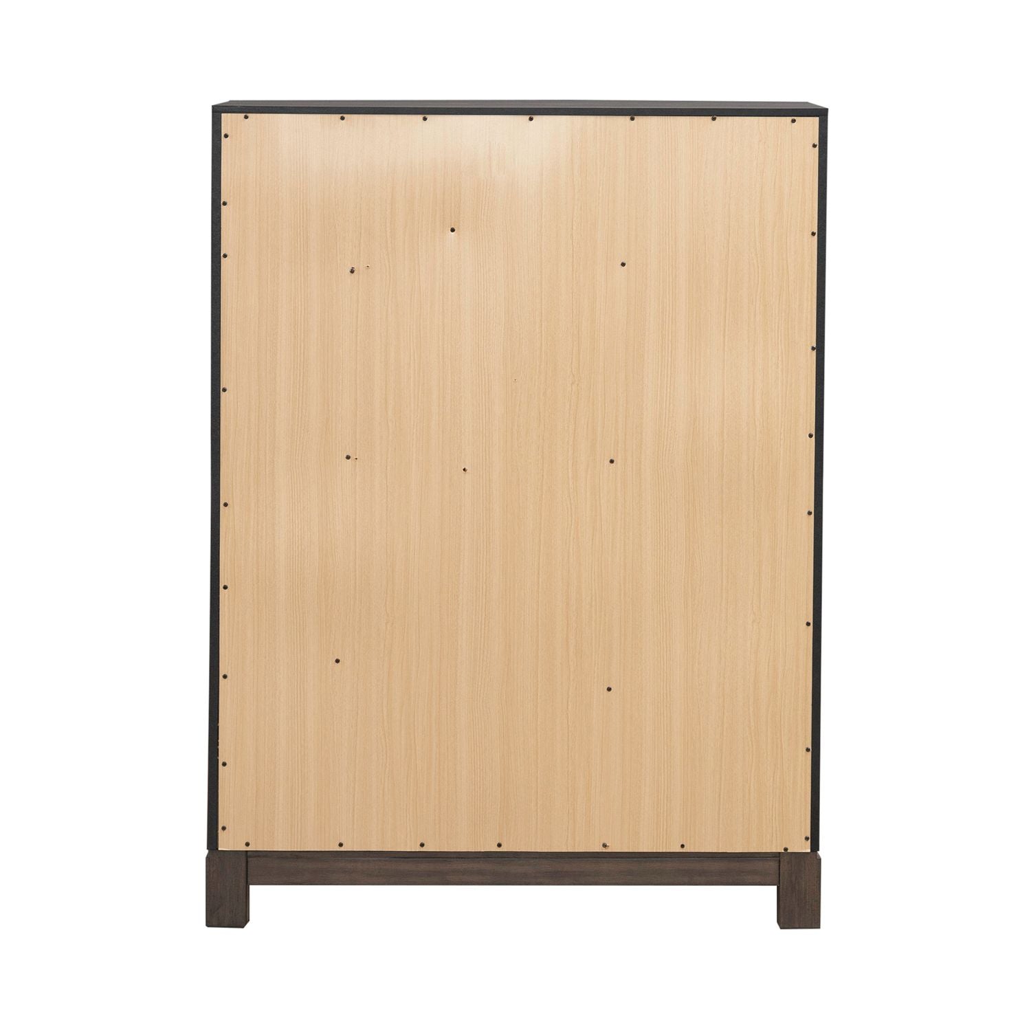 Create a room of your own that provides the perfect start and end to each day with the Modern Edge 5 drawer chest. Meticulously crafted using Rubberwood solids and Melamine, this chest features a Caffe finish. The chest boasts wide picture frame molding and a distinguished raised block base, exuding timeless charm and sophistication. Each drawer front is wood framed, accentuating the craftsmanship and adding a touch of elegance to the piece. Adorned with Satin Wash bar pull hardware, the drawers offer both ease of use and visual appeal. The top two drawers feature a unique design element: moldings that create the illusion of two separate drawers while still providing deep storage space within each. This clever detail adds visual interest and enhances the chest's versatility, allowing for efficient organization without compromising on style. Whether you're storing clothing, linens, or personal belongings, the Modern Edge 5 drawer chest offers ample storage capacity while elevating the aesthetic of your bedroom. With its impeccable design and thoughtful details, it's sure to become a cherished piece in your home for years to come.