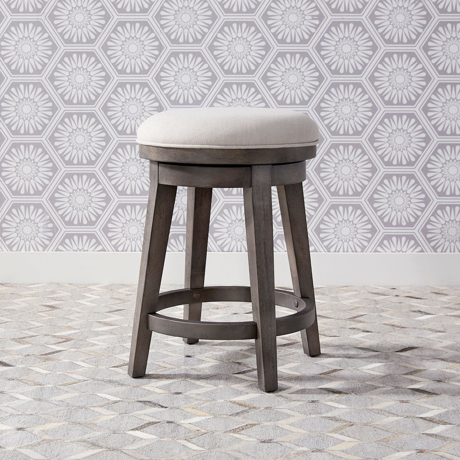 The Modern Farmhouse console stools are very versatile and can be used with our console bar, kitchen island or counter height tables. Designed to work with any décor from cottage to contemporary. Crafted of solid rubberwood legs in a dusty charcoal finish. Features a cushioned upholstered seat with a return swivel.